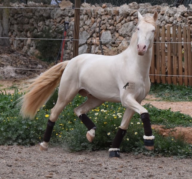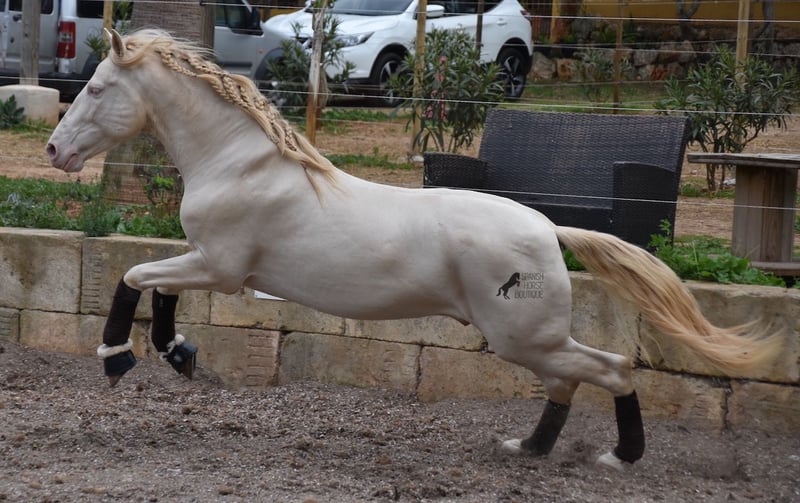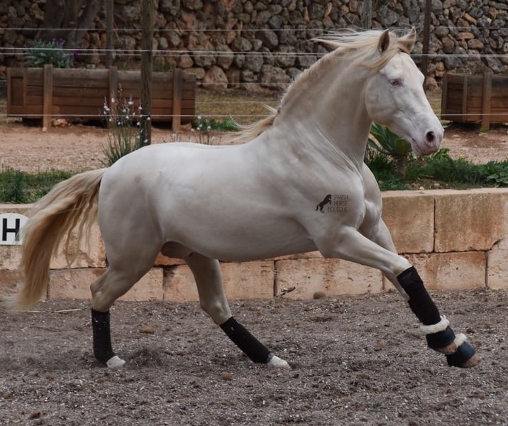 This Andalusian stallion, born in 02/2020, is an absolute sweetheart! Since weaning, he has grown up with his owner under the best care and enjoys a wonderful life in his large paddock, with horse buddies around him and lots of dogs to keep him company. The owner is very keen on dressage and he has the talent and movement for it. Unfortunately, at 148cm, he is a little short to compete properly. We are therefore looking for a good home for this darling. He already has competition experience and behaves really well for a young stallion, even outside his usual environment. At home he is absolutely cool and not at all stubborn, although there is of course the option of castration on site. Under saddle, he has a correct, age-appropriate basis on a water snaffle and is not only suitable for dressage, but also for working equitation or western riding, as he is short and very agile. His strong back is particularly great for a young horse, which reflects the correct training. He also has beautifully clear legs, which I captured on video ;) The seller preferred to wrap up her darling for the free run :) An absolute gentleman and a horse of the heart, with a big heart, in a small format. Price according to the quality. He is currently in Mallorca! Videos available on request. I am happy to organize an AKU, castration, riding, transport or even your trip, should you come to see him in person. Details can be found on my website or in conversation. Saludos from Spain