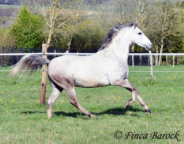 Rasse: Andalusier Name: Alioli Geschlecht: Wallach Stockmaß: 160 cm Alter: 10.07.2019 Farbe: Schimmel Preis: 12500 € Vater: o. P. Mutter: o. P. Alioli ist ein kompakter Bub und ein absoluter Schmusebär. Er liebt lange Krauleinheiten und ist sehr personenbezogen. Mal eben Heu füttern in seiner Box endet in der Regel in einer Schmuseeinheit. Alioli ist solide in den GGA geritten und hat eine gute Bacis. Er kennt auch schon Schenkelweichen und Schulterherein. Im Gelände zeigt er sich aufmerksam und neugierig. Neue Sachen sind daraus mal kurz gruselig, er lässt sich aber leicht überzeugen diese kennen zu lernen. Sobald sein Reiter ihm Sicherheit vermittelt, nimmt er dies gut an. Hervorzuheben sind seine sehr sitzbequem Bewegungen mit denen er seinen Reiter sofort ein Lächeln ins Gesicht zaubert. Durch seine rahmige Statur deckt er auch gut größere Reiter gut ab. Ein toller Partner für alle die einen kompakten, leichtrittigen Andalusier suchen der dazu noch eine absolute Schmusebacke ist <3 inkl. klinischer Untersuchung und Röntgenbildern Kontakt: Finca Barock, Tel. 0173-696 31 81, 56291 Wiebelsheim