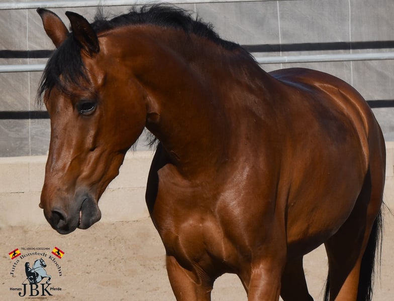 Le hongre andalou Pegaso est né le 11 décembre 2018 et mesure 1,57 m. Son père est le hongre hispano-arabe Cucharin, qui est stationné dans ma écurie. La mère était une jument PRE, mais n'a pas été approuvée. Pegaso a de l'expérience avec les enfants dans le cadre scolaire et est extrêmement bien élevé, car il a été éduqué de manière exemplaire et continue d'exécuter toutes les tâches qui lui sont confiées sans aucun problème. Il se déplace très bien et est super facile à manipuler. Son caractère est un 1 avec une étoile !!! Tout aussi gentil que son père.