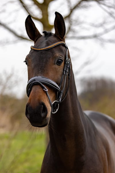 This expressive, dark brown 5-year-old mare captivates at first glance with her harmonious appearance, elegant build, and appealing overall quality. She offers exactly the combination many riders desire: a successful blend of rideability, character, and potential.