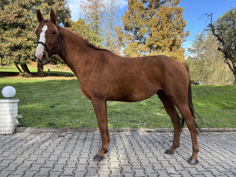 This lovely and calm Anglo-Arabian mare is looking for a new home where she can continue to develop her potential. Farah was gently backed in the fall of 2024 and has been consistently cooperative, rideable, and easy to handle from the start. She works with motivation on the arena and learns quickly. She is also already confident in the field—both in company and alone—though she still requires a secure rider. She has already been introduced to jumping and displays good awareness and talent—making her an excellent candidate for eventing. She clearly enjoys dressage work as well: she moves freely through her body and has good basic gaits. However, her training in these areas has not been recent, as she is currently based in a distance riding stable. In daily handling, the mare is well-behaved, trusting, and completely unflappable even in unfamiliar situations. Loading, farrier visits, grooming, and turnout are no problem at all. She is highly social within her herd. Her dam is an English Thoroughbred with an extremely people-oriented character, which she has passed on to Farah. Almost all generations of her maternal line have been successful on the racetrack, and her pedigree includes some notable racing legends: Danzig – Northern Dancer – Alydar – Ta Wee – Housebuster – Mr. Prospector – Secretariat The stallion is a successful distance horse, victorious up to 120 km, known for his quick recoveries, clear-headedness, and great willingness to perform. His sire, Takko el Samawi, was one of Austria’s most successful distance stallions, winning races up to 160 km and finishing 8th at the 2011 European Championships in Florac, France (considered one of Europe’s most challenging endurance rides). He reliably passes on his stamina—an example is Talisman el Takko, successful up to 160 km and 8th at the 2025 European Championships. On the maternal side of the sire, there is interesting Egyptian performance blood, known for endurance, toughness, and excellent character. This mare combines a rare and valuable blend of racing and endurance lines with rideability and character—ideal for someone who wants to put their own finishing touch on this versatile mare, whether a sport rider or an ambitious leisure rider. A test ride fee of €30 will be charged, which will be deducted from the purchase price if the sale is completed.