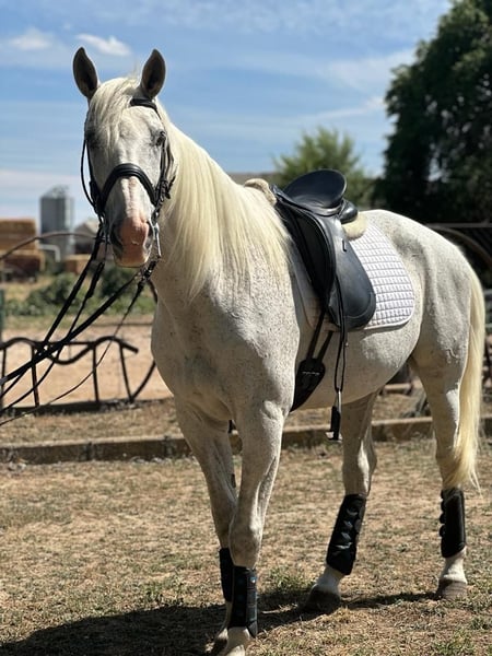 Amaranth Luso-Anglo-Araber, Lusitano 50% Englisch 25% Araber 25%. Widerristhöhe gemessen mit Hypometer 1,60m. Geboren im April 2009 Picazzo Vollblüter Wallach Ideal für Feld und Bahn Er hat an zahlreichen Veranstaltungen aller Art teilgenommen. Sehr gut ausgebildet. Gute Bewegungen und sehr bequem. Schenkelweichen, Rückwärtsrichten, Traversale, Renvers, Hilfengebung, Trabgalopp, eingeleitet in den Fußwechseln... Bei Fragen rufen Sie 696613777 an.