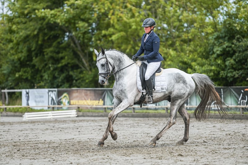 Magnifique hongre, caractère de pointe ! Toujours de bonne humeur, toujours prêt à performer et à se concentrer. Il est approuvé et a gagné le HLP à Stadl Paura courage 8,41, aptitude sous la selle 9 ! 6 ans castré. Son père est l'étalon d'élite (Camar ) Gabun, qui a obtenu des succès en catégorie S. Sa mère est la jument primée et gagnante Camar Vaticana AA par Bonaparte N. Elle a également gagné sa SLP avec 8,4, également avec une aptitude sous la selle de 9. Elle est classée en VS A** et fait partie de notre élevage. Varys a besoin de "son" cavalier, il faut que ça colle. Il est positivement sensible et pour le bon cavalier, il va jusqu'au bout. Il a besoin de beaucoup d'exercice, c'est un joyeux drille qui aime rapporter des objets et jouer avec. Il n'a aucun problème de manipulation, il est également très maniable en extérieur avec suffisamment de go. A l'obstacle, il fait preuve de prudence et d'une bonne vue d'ensemble, il n'est encore jamais tombé. Il lui arrive aussi de s'adapter. L'eau n'est pas non plus un problème pour lui. Nous gardons son TG-.Depot avec tous les droits, ses deux premiers poulains sont très réussis et tous deux primés.