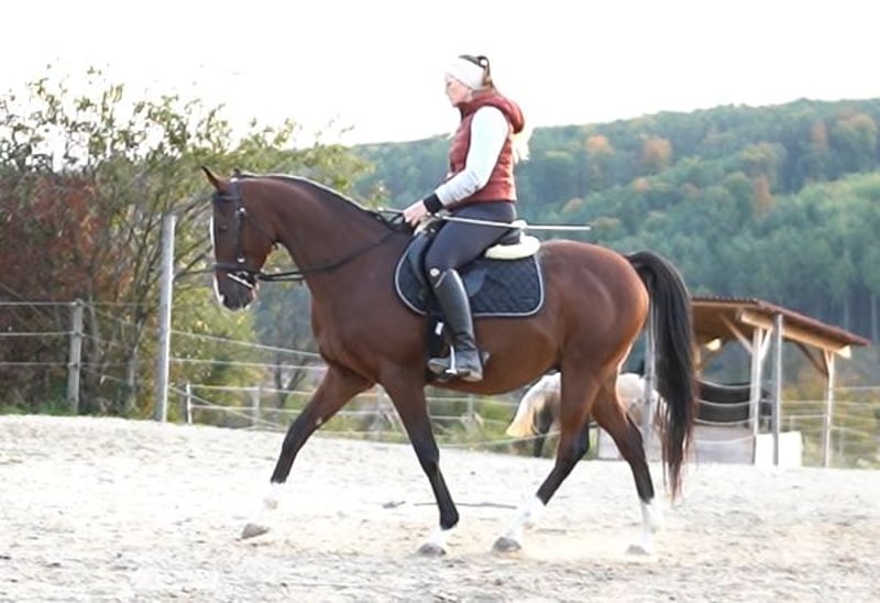 Ein Freund fürs Leben und eine absolute Ausnahmeseele. Dieser wunderschöne Anglo-Araber namens Amon Ra sucht seinen Menschen. Amon ist am 1.3.2018 geboren und durfte mit seinem nahezu gleichaltrigen Bruder und einem älteren Wallach in einem riesigen Offenstall aufwachsen. Er wurde schonend, entsprechend auch seiner späten Reife, mit 4 Jahren ans Reitergewicht gewöhnt und ab seinem fünften Lebensjahr englisch ausgebildet. Er zeigte sich von Beginn an lehrreich, unerschrocken und äußerst folgsam und sanft. Er lässt sich problemlos verladen und ist ein Gentleman beim Hufschmied. Amon kennt Beschlag, läuft jedoch aktuell barhuf. Zwischenzeitlich lernte er durch seine Kastration und einen Umzug auch die Haltung in Box sowie Paddockbox kennen. Amon kommt mit allem zurecht, wurde nie heiß oder hatte mit aufgestauter Energie zu kämpfen. Er fühlt sich jedoch am wohlsten in einer Herde auf großer Fläche, er ist jung, verspielt und möchte sich bewegen können. Amon ist hoch intelligent, sensibel, menschenbezogen, lässt sich am durchhängenden Strick führen, schmust und krault mit seinem Menschen, blütertypisch einfach ein Charakter durch und durch. In der Herde zeigt er sich als äußerst aufgeschlossen, hat kein Interesse an Stuten, würde niemals eine Rangelei beginnen, lässt sich jedoch auch nicht massakrieren sondern steht seinen Mann. Nach einem knappen halben Jahr Stehzeit aufgrund Zeitmangels des Besitzers ist Amon nun bei mir im Beritt und wird umgeschult auf die klassische Dressur. Obwohl er aktuell Neuland betritt hinsichtlich Selbsthaltung, möglichst ruhigem Tempo, seitlicher Flexibilität und vorallem Hilfengebung durch Impulse ist er unglaublich lernwillig, offen und nimmt alles richtig gut an. Seine Vater Armigerent war in meinem Besitz und war ein Hengst von unglaublichem Charakter, Ausdruck, Härte und Leistungsbereitschaft. Seine Mutter Praiyah durfte ich selbst reiten, eine sanfte, willige, wunderschöne und herzliche Stute. Ein Kennenlernen / Probereiten ist nach Terminvereinbarung erwünscht, wird jedoch um Reittourismus zu vermeiden mit 45€ verrechnet. Bei Kaufabschluss wird der Betrag natürlich gegengerechnet. Bei dem Transport kann ich auch gerne behilflich sein. Amon lebt aktuell im Mittelburgenland und freut sich auf seinen neuen besten Freund. Aktuell liegt Amon bei 8🥕🥕🥕, Preis steigt natürlich im Laufe der Ausbildung. Bei Interesse bitte WhatsApp oder SMS an 069917278812, ich rufe dann zurück.