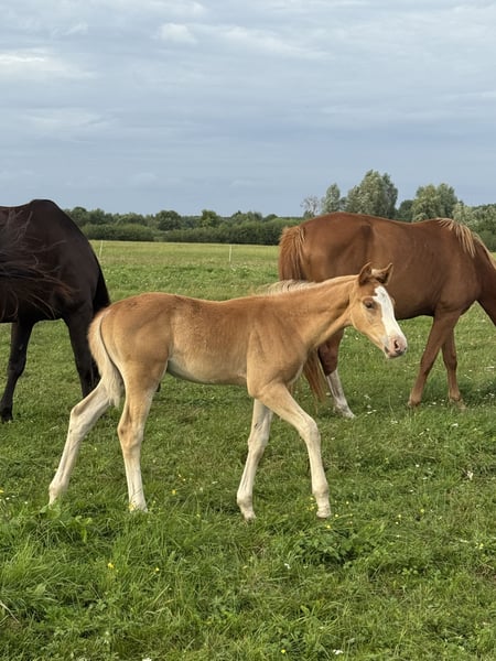 Verkaufsanzeige für ein Pferd Ich biete einen wunderschönen Hengst zum Verkauf an, der sicherlich die Aufmerksamkeit jedes Reiterliebhabers auf sich ziehen wird. **Details:** - Rasse: Anglo European Studbook - Geschlecht: Hengst - Geburtsjahr: 2025 - Farbe: Fuchs - Größe: Derzeit ca. 1,40 m, aber es verspricht, ein groß gewachsener Pferd von etwa 1,70 m zu werden - Fähigkeiten: Vielseitiges Pferd, zukünftig geeignet für Springen oder Vielseitigkeit Rocket Sky ist ein vielversprechendes junges Pferd, das sich durch seine einfache Handhabung auszeichnet. Er kann am Führstrick geführt werden. Er hebt die Beine, wurde bereits vom Hufschmied behandelt und fährt problemlos in den Hänger. Er ist gegen alle möglichen Abschreckungsmittel allergisch. Er besitzt einen wunderbaren Charakter und arbeitet gerne mit Menschen zusammen. Seit seiner Geburt lebt er auf der Weide in einer ausgeglichenen Herde. Die Mutter kann vor Ort besichtigt werden. Ich lade Sie herzlich ein, Kontakt aufzunehmen, um weitere Informationen zu erhalten und einen Termin zu vereinbaren. Dies ist eine ausgezeichnete Gelegenheit, Eigentümer dieses charmanten Hengstes zu werden!