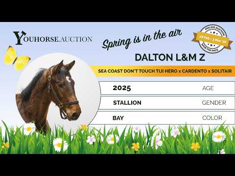 First jumps and he immediately shows his natural talent. Plenty of instinct over the fence, quick off the ground and light-footed in his movement. He shows great commitment and clearly wants to jump to the other side. He jumps with a beautiful technique, stays correct in his body and shows easy scope. A young horse with natural overview and convincing jumping style. Sire Sea Coast Don’t Touch Tiji Hero (1.45m) is by Diamant de Semilly (1.60m) out of a Chin Chin damline. Diamant de Semilly is one of the most influential Grand Prix sires worldwide and produced countless 1.60m horses. Tiji Hero himself competed internationally up to 1.40m–1.45m level and has already produced several 1.60m performers such as Desiree DR Z, Platini de Kalvarie and Django Hero Z. Dam Hindorette (2012) is by Cardento (1.60m, Olympic silver medalist). Second dam Zindorette (by Solitair) comes from a strong KWPN sport family. Third dam Tindorette (sport 1.60m) competed at 1.60m level herself and produced multiple sport horses. Fourth dam Operette (by Indoctro) forms the foundation of this performance family and produced: Tindorette – 1.60m Beaurette – 1.30m Mirdads LPM – 1.30m Laurette – 1.30m A damline with proven 1.30m–1.60m results, combined with Diamant de Semilly, Chin Chin and Cardento blood from the sire line. Scope and technique are deeply embedded in this pedigree..