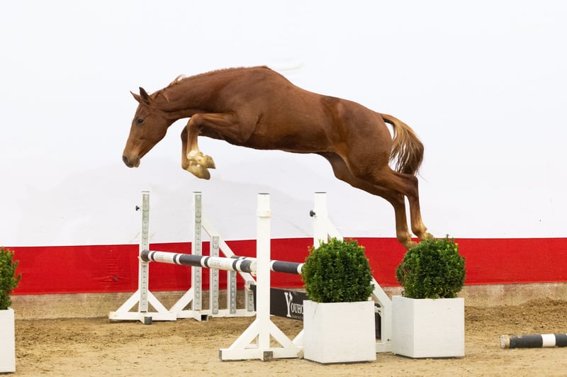 Urbanus, born in 2024, is a well-built chestnut colt showing scope over the jump. Sire High Five is an eight-year-old AES approved stallion by Casall out of the 1.60m GP mare Pialotta. Dam Fanzy van het Oude Hof descends from Diamant de Semilly x Quidam de Revel. Third dam Himalaya vd Padenborre gave four 1.60m Grand Prix horses, including Ohio van de Padenborre and Val T’Horens van de Padenborre. This horse was previously auctioned, but as the buyer did not meet his obligations, the payment was never completed. The horse itself is exactly as described. Perhaps it’s no coincidence the previous buyer didn’t pay — this horse was simply meant for you!
