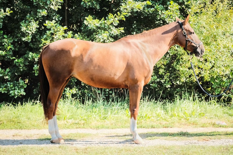 Experienced in competitions up to 4'0" (120 cm). Consistent in the jumping arena, easy to ride, suitable for amateur riders. Very well trained in dressage. Ready to compete immediately, currently in regular training. Blind in one eye.