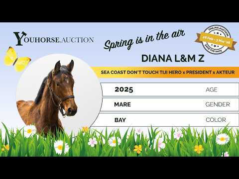 A very interesting yearling who immediately stands out with her modern presence. She gives the impression of a horse with plenty of quality, quick off the ground and full of blood. She shows a very good canter with balance and scope. A modern sport type with everything needed to develop into a quality horse for the future. Sire Sea Coast Don’t Touch Tiji Hero (1.45m level) is a son of Diamant de Semilly (1.60m Grand Prix, one of the world’s most influential sires) out of China Touch Hero (by Chin Chin 1.60m). He has already produced several 1.60m horses such as Desiree DR Z, Platini de Kalvarie and Django Hero Z. Dam Tiana van het Schanske (1.25m level) is by President (1.40m). From this line comes Heather (1.40m). Further in the damline we find sport horses such as Unette L (1.40m), Peachtree (1.30m), Damon (1.30m), Ninge (1.30m) and Ibouche (CCI3* eventing). A family carrying strong performance genes through Diamant de Semilly, Chin Chin, Clinton and Akteur in the direct line.