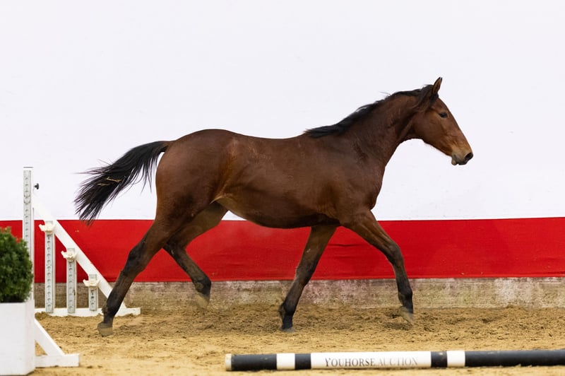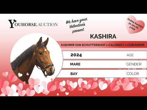 Long-lined mare with lightness, technique and future potential Kashira is a long-lined mare that radiates quality and will only turn two years old. She is very light-footed, shows a big canter and is currently still slightly overbuilt. We expect her to continue growing and developing. Over the jump she already shows very good technique, with an especially strong and noticeable hind-end technique. She comes straight from the herd and is therefore still very green, just halter-broken. In our opinion, a true talent for the future and a horse to fall in love with, backed by an exceptional pedigree. Sire Kashmir van Schuttershof (Nabab de Rêve x Tenor Manciais) competed internationally at 1.60m Grand Prix level and is a BWP Ambassador. He is one of the most influential sires in modern showjumping, renowned for passing on scope, attitude and jumping technique. His offspring include numerous top-level international performers such as H&M All In, Gazelle and Orlando de la Provillo (1.65–1.70m). Damline The dam is T. Amelusina II (Calando I), descending from the world-famous Amelusina damline. Calando I himself competed internationally at 1.60m level and is known for transmitting scope and quality. This direct damline and family has produced an exceptional number of international sport horses and approved stallions, including: – Eamelusina R57 (Calvaro Z), international 1.60m – Special Marathon Curiano van Maarle Z (Canabis Z), international 1.60m – Kuechenboy (Lord Z), international 1.55m – Daydream (Colman), international 1.50m – Den Ham Blue R (Mr. Blue), approved KWPN stallion, 1.45m – Joey (Dexter R), international 1.45m – B Amelusina (Sam R), international 1.45m – Gossip S.A. (Vingino), international 1.45m – Jillz S.A. (Bugatti VDL), 1.35m, CSI winner Further back, this damline shows an extraordinary concentration of 1.45–1.60m performers, approved stallions and international CSI sport over many generations. A family that has consistently produced top-level showjumpers for decades.