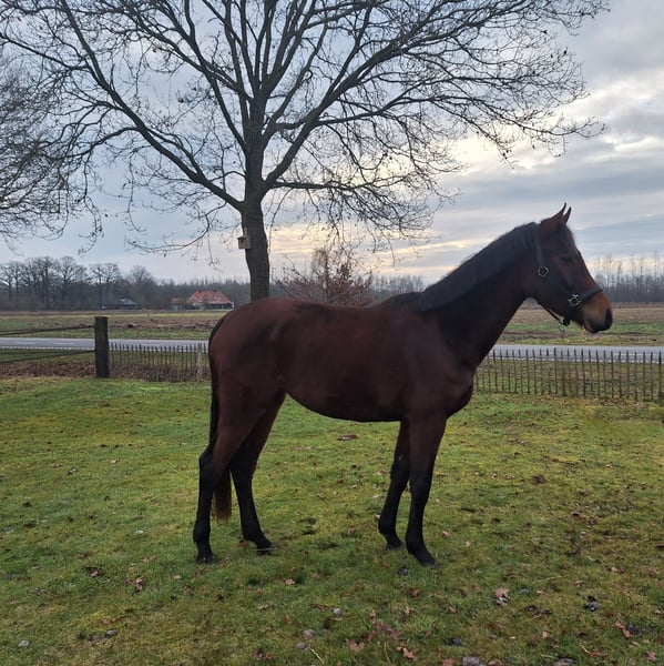 Toekomstige dressuur topper🤩 (Bijna) 3 jarige merrie van Novian x Jazz. Rond de 1,57 is nog in de groei(deze lijn geeft laat bloeiers 😊) * Kent vast staan en vind het heerlijk om gepoetst te worden. * braaf bij de hoefsmid en tandarts. * Nuchter van karakter. * Kent de beginselen van het longeerwerk en vind dit leuk om te doen. * sociaal met andere paarden. * geen stal gebreken. * keuren k.k Filmpje op aanvraag.