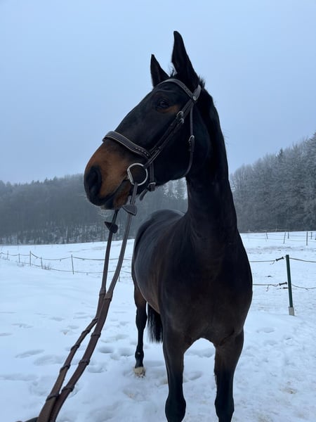Menschenbezogene, liebenswerte Stute aus eigener Zucht, wurde selbst ausgebildet aus privaten Gründen zu verkaufen. Sie zeigt sich stets leistungsbereit, möchte sowohl im Umgang als auch unterm Sattel immer als richtig machen. Leichtrittige Stute mit Potenzial am Sprung. Ideale Partnerin für den gehobenen Freizeitsport als auch erfahrene Amateure mit Turnierambitionen