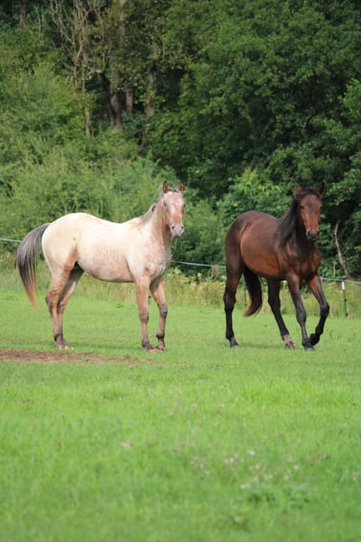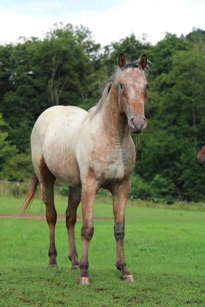 Ima Chocolade Muffin est un étalon bien développé, très harmonieux et musclé avec une couleur originale. En ce moment, il vit avec ses compagnons dans un pré et est bien intégré socialement. Sur demande, Muffin peut également être vendu en tant que hongre. Muffin est très routinier et décontracté dans les situations quotidiennes, il connaît les licols, le travail en main, l'attache et monte dans le van comme un professionnel. Cependant, il est sensible dans ses interactions et, en raison de son âge, n'est pas adapté aux débutants. Au niveau de l'articulation carpoïde avant gauche, il a une arthrocèle (une protrusion de la capsule articulaire), actuellement sans signification clinique, des radiographies sont disponibles, une solution de garantie lors de l'achat pour ce problème serait possible. Les deux parents sont négatifs au test 5-Panel.
