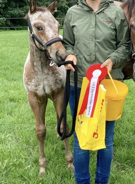 Ima Chocolade Muffin es un semental bien desarrollado, muy armónico y musculoso con un color excepcional. En este momento vive con sus compañeros en un prado y está bien integrado socialmente. Si se desea, Muffin también puede ser vendido como un macho cabrío. Muffin es muy experimentado y tranquilo en situaciones cotidianas, conoce el uso de cabezadas, el manejo, la atadura y entra en el remolque como un profesional. Sin embargo, es sensible en el trato y, debido a su edad, no es adecuado para principiantes. En la articulación carpiana delantera izquierda tiene una artrocele (una protrusión de la cápsula articular), en este momento sin significado clínico, se dispone de radiografías y sería posible una solución de garantía en la compra por este problema. Ambos padres son negativos en el 5-Panel.