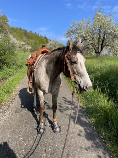 Meine Stute läuft nicht taktrein. Röntgenbefund war komplett unauffällig. Bonnie hatte letztes Jahr ein wunderschönes Fohlen zur Welt gebracht. Die Stute vererbt alle Merkmale die ein Appi haben muss. Da ich gerne lange Strecken reite ist die Stute für mich nicht mehr geeignet. Im Schritt kann man mit ihr viel unterwegs sein. Sie eignet sich auch für Kinder. Die Stute ist sehr geduldig. Die Stute ist sehr gut im Umgang und Mann kann sie mit allen Pferden zusammen stellen. Sie ist sehr sozial. Ich würde mich freuen wenn sie einen guten Platz bekommen würde.