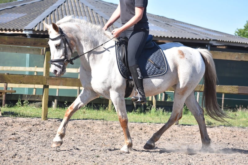 Highly trained, uniquely colored Appaloosa D/E pony mare Meet Astana, a stunning mare approximately 1.48 meters tall. She is a Quarter Appaloosa type. Born in mid-August 2007, she has extensive experience. Nevertheless, you would never guess her age! She is expected to remain healthy and active for many more years. With her distinctive coloration and sweet, engaging face, she will immediately steal your heart! Astana boasts the rare Varnish Roan Appaloosa coat pattern. Astana is very well-behaved and cooperative here. She is suitable for less experienced riders but also offers enough challenge for advanced riders. Under saddle, she is a reliable and versatile pony, but she also excels on the ground! She loves groundwork and liberty dressage, and can already give her hoof and rear on command. She calmly participates in riding lessons and responds obediently. A 7-year-old child has ridden her independently. Thanks to her baroque build and gentle nature, she is also an ideal family horse. Additionally, she is traffic-safe and trailer-trained. Includes a very recent health and veterinary inspection report, including blood test. Are you ready to work with this extraordinary mare? Don’t miss this opportunity! Includes recent veterinary report with blood test, fully approved for sport with no remarks.