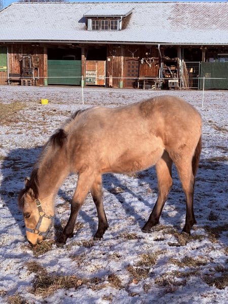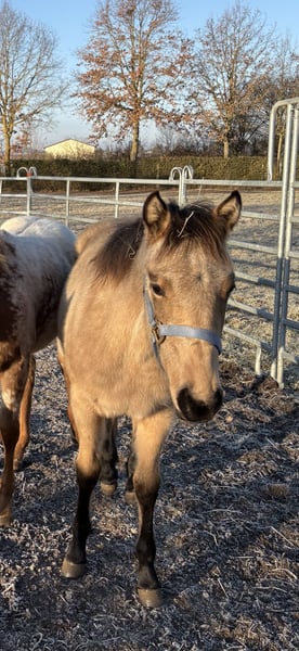 Zum Verkauf steht eine wunderschöne Appaloosa Stuten, geboren im Jahr 2025. Mit einem geschätzten Stockmaß von 156cm ca. ist sie die ideale Partnerin für Western-Reiter, die auf der Suche nach einem vielseitigen und charakterstarken Pferd sind. Belle kennt schon den täglichen Alltag mit Halftern , führen auf die Koppel , anbinden , putzen , Tierarzt, Hufschmied usw . Traktoren , Motorsägen, Rotwild Diese Stute zeichnet sich durch ihr freundliches Wesen und ihre Lernbereitschaft aus. Sie ist gut erzogen und möchte immer gefallen . Ihre auffällige Fellzeichnung macht sie zu einem echten Blickfang. Sie eignet sich sowohl für den Freizeitbereich als auch für den Turniersport ist natürlich auch sehr interessant für die Zucht . Bei Interesse oder für weitere Informationen stehe ich gerne zur Verfügung. Peppys Golden Belle ( LG 2 prämiert ) Ca 156 Sire: Cowboys Spoted San DAM: Sheza Mithy Nikita Farbe Buckskin Fohlen ist 5 Panel doppelt NEGATIV über die Elterntiere Geimpft, regelmäßig entwurmt!! Registriert beim APHCG und APHC …. E Pass von APHCG und Orginal COR von APHC✅ Kommt nur in beste Hände , ⭐️⭐️⭐️⭐️⭐️ Sterne zuhause !!!