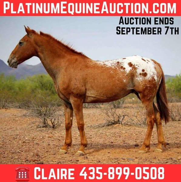 ONLINE AUCTION Place your bids at www.PlatinumEquineAuction.com Starting Bid $3500 Auction ends September 7th, 2025 Need a new saddle? Check out White Rock Saddles on our website or Facebook Add some color to your life! Meet Jasper! This handsome boy is a super fun guy to have around. Jasper has such a fun personality and has the fun color to match. This 14 year old, 15h, appaloosa gelding has done a little of everything! He has been used on a ranch for branding, sorting and gathering cattle. He will go all day and not quit you! He would make an awesome endurance trail horse as well! Jasper has also been used for gymkhanas and barrels. He’s quick on his feet and loves to work. He’s also a wonderful trail horse, has a ground covering walk and rides along on a loose rein. He stands tied, bathes, loads and hauls nicely and is good for the farrier. He’s barefoot with rock solid feet, and requires no maintenance. Jasper can sit and come back the same horse even after time off. Don’t miss out on this cool looking Appaloosa gelding, he’s sure to get you noticed wherever you take him! Located in Marana, Arizona. Please feel free to text or call Claire Siebols with any questions at 435-899-0508. ONLINE AUCTION Place your bids at www.PlatinumEquineAuction.com Starting Bid $3500 Auction ends September 7th, 2025 Need a new saddle? Check out White Rock Saddles on our website or Facebook
