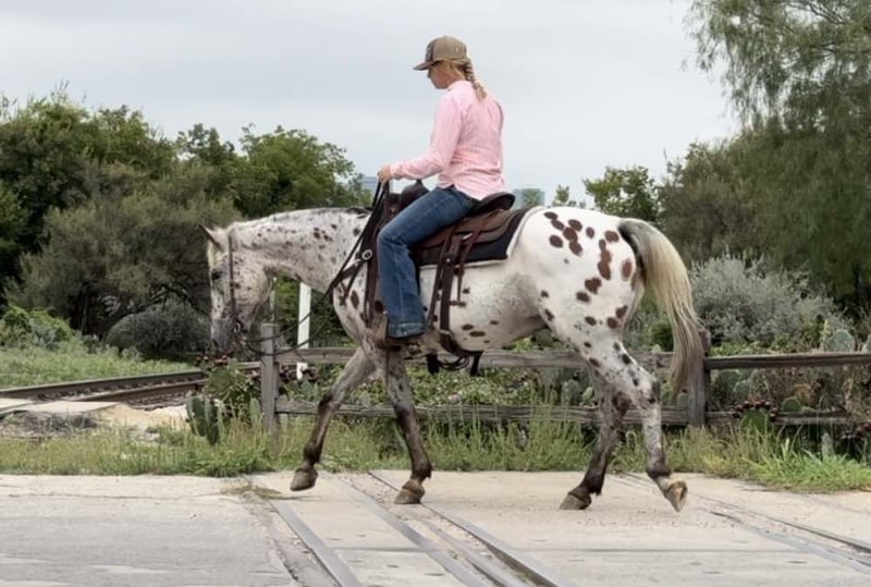 ONLINE AUCTION Place your bids at www.PlatinumEquineAuction.com Starting Bid $3500 Auction ends September 29th, 2024 Need a new saddle? Check out White Rock Saddles on our website or Facebook! “Santo” is a 14.1H, 14 yr old Appaloosa gelding. If you’re looking for the best of the best when it comes to color, safety, ease to handle/ride, personality and gentleness, they just simply don’t come better than Santo. He’s an absolute SAINT the whole family can enjoy. The very smallest babies up to the novice adults will be safe on this guy! He is extremely easy to ride, neck reins perfectly, switches gaits only when asked, stop when he’s told to and has absolutely ZERO buck, bolt, rear or spook. Santo has been with a family full of kids and has done all the things kids can think of on their trusty steed. He’s dabbled in the play day events, seen countless amounts of trails, roped some slow cattle, and even been jumped! He would be the perfect first horse or horse for a kid looking to go have fun with something experienced in practically everything! Santo would also be the perfect trail/pleasure horse for anyone needing a safe, predictable, COMFORTABLE, sure footed, sane mount. Leave him off a day or 6 months and he’s the same horse every time. He is so much fun to ride and will put a smile on anyone’s face that swings a leg over him! He has one of the best people pleasing personalities and is so SWEET!! He loads, leads, stands, and ties great. He’s traffic, car, crane, golf cart, city, Santo is UTD with teeth, feet and coggins and ready to go to his new family! You won’t want to miss this gorgeous gelding that is sure to keep anyone obsessed with going to the barn to ride! Go to his website page northtexashorsecompany.com/santo for more pictures and footage! Please call Blair with North Texas Horse Company for more info at 817-757-3046. We are located in Weatherford, TX and can help arrange affordable shipping to anyone!! ONLINE AUCTION Place your bids at www.PlatinumEquineAuction.com Starting Bid $3500 Auction ends September 29th, 2024 Need a new saddle? Check out White Rock Saddles on our website or Facebook!