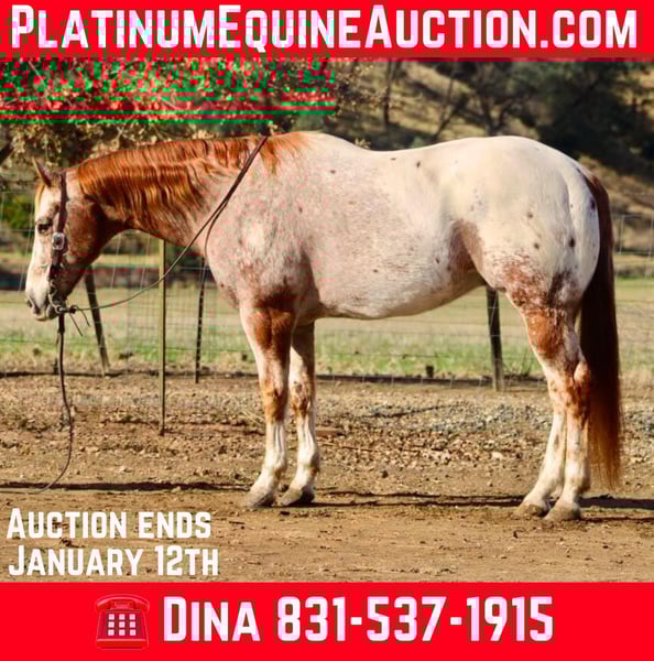 ONLINE AUCTION Place your bids at www.PlatinumEquineAuction.com Starting Bid $3500 Auction ends January 12th, 2024 Need a new saddle? Check out White Rock Saddles on our website or Facebook! Charlie, the exceptional 14-year-old 15 hand Appaloosa gelding, truly embodies the essence of equine beauty and temperament. His striking appearance is complemented by an amiable and cooperative nature, making him a delightful companion for riders. In the arena, Charlie has consistently demonstrated his impressive skills, showcasing a well-balanced walk, trot, and lope. His headset is notably collected, allowing for smooth transitions and an overall graceful performance. Recently, we have introduced him to a variety of obstacles, including bridges, a car wash, and a covered wagon, and he has approached each challenge with admirable enthusiasm and confidence. Beyond his arena accomplishments, Charlie has also begun to explore the great outdoors. His trail riding experiences, although still developing, have been nothing short of commendable. He navigates trails with assurance, effortlessly crossing creeks and logs, displaying a remarkable adaptability to various terrains. Furthermore, his exposure to traffic has been handled with poise, ensuring a safe and enjoyable experience for both horse and rider. It is clear that Charlie is an ideal mount for advanced beginners and more experienced riders alike, who will undoubtedly appreciate his remarkable capabilities and gentle demeanor. In terms of care, Charlie is remarkably easy to manage. He is simple to catch, clip, and bathe, making him a low-maintenance companion. He has always been totally fine when out roam freely in a pasture but sometimes may crib in the stall. Should you require any further information regarding Charlie, I encourage you to reach out to Longhorn Ranch at 831-537-1915, where Dina will be more than happy to assist you with any inquiries. I am genuinely optimistic about Charlie’s future and the joy he will bring to his new rider. ONLINE AUCTION Place your bids at www.PlatinumEquineAuction.com Starting Bid $3500 Auction ends January 12th, 2024 Need a new saddle? Check out White Rock Saddles on our website or Facebook!