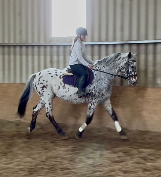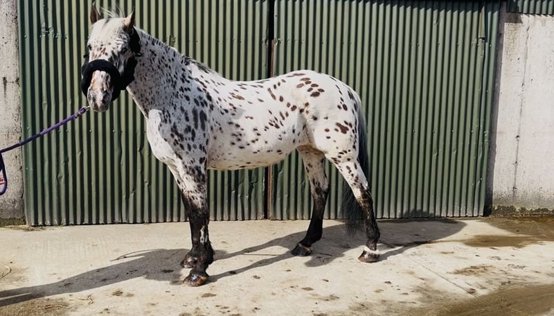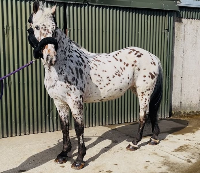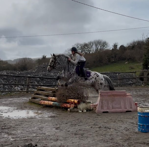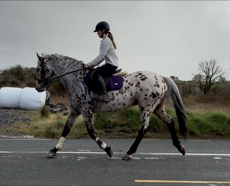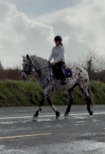 Pokadot is a 16yo gelding 165cm Full recorded pedigree . He is a registered Irish Sporthorse. Very well experienced horse. He has hunted, hunter trialled , competed at training shows and taken part in all riding club activities. Fun and capable horse. Really awesome colour and will always stand out in the crowd! He is a exceptionally beautiful horse and looks even better in real life 😍🤩 Price €4,750 Located in Sligo, Ireland. Regular professional transport available if required. For further information or videos please contact Edward on 00353871412129. All enquiries welcome.