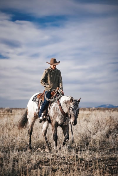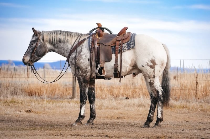 ⚜️ 𝓗𝓮𝓻𝓲𝓽𝓪𝓰𝓮 𝐖𝐢𝐧𝐭𝐞𝐫 𝓒𝓵𝓪𝓼𝓼𝓲𝓬⚜️ Happening now thru MONDAY | DECEMBER 29th - Available EXCLUSIVELY on HorseBid's website! For more details and to register visit: www.Horsebid.com CONSIGNOR CONTACT: Sand Creek Ranch 208-821-2351 LOCATION: Saint Anthony, ID BREED: Appaloosa REGISTERED: Yes REGISTERED NAME: BT Foxy Dream COLOR: Brown/White HEIGHT: 15.1 AGE: 3 GENDER: Gelding Montana is a coming 4 year old registered Appaloosa gelding. Not only does this guy have a full mane and tail but he is conformationally good looking and has the coolest looking color! He has always been an in your pocket gelding with a puppy dog personality. He is very friendly and enjoys being in peoples company. Montana will come over to the shake of a grain bucket or will be the first meet you at the gate. Montana is confident, quiet, and willing to please. He goes where he’s pointed and rides off alone or in a group. Montana will lope nice collected circles, has a good stop, neck reins and is starting to spin nicely. Montana is light in your hands and throughout his body. He will side pass move his shoulders, hind quarters and he will lay down on cue. Montana is sacked out to a variety of things, will go over a teeter totter bridge, noodles obstacles, tarps, big balls, ATVs, etc… anything new we’ve ever thrown at him he accepts with confidence and ease. Montana has been started on the hot heels. He also drug heavy logs and is no stranger to weight in the horn or seeing things on the end of a rope. Montana has been rode both in the arena and outside. He steps out nicely, on the desert and on the trails. He will cross logs and water with no problems. He is sure footed knows how to pick up his feet when navigating through various different terrain. Montana has been rode by a variety of riders and has handled them all with ease. Montana stands around 15.1 hands. He will pick up all of his feet, stand tied, trailers and hauls with no problem. This gelding has all the potential in the world, a solid foundation, and easy going personality. He sells with a current PPE.