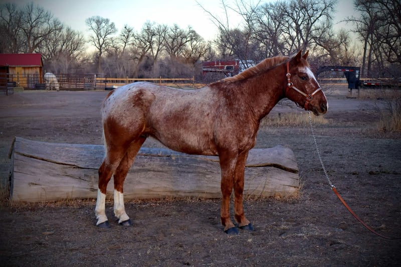 ONLINE AUCTION Place your bids at www.PlatinumEquineAuction.com Starting Bid $3500 Auction ends March 16th, 2025 Need a new saddle? Check out White Rock Saddles on our website or Facebook! Simba is an absolutely stunning 14.2h, 6 year old red roan Appaloosa gelding with a HUGE heart and a ton of try! This gelding is absolutely genius, picks up on everything you teach him quickly and willingly, is extremely athletic and supple and is also safe for younger riders!! Simba knows how to “pick you up” at the block, knows how to bow and lay down on command, is working on the smile and absolutely loves people and other horses! Simba has a nice walk/jog/lope, a quick stop and rollback, knows how to collect up and hold himself and knows how to sit down off of just your voice and seat! Simba is also a trail wiz! He absolutely loves being out and about whether it’s with a group of horses or by himself, He is trustworthy and reliable every adventure. Simba has been ridden right next to highways and busy streets with not a care in the world, he’s been by bikes, trains, runners, and all of the hectic town life! We have taken Simba to the drive through, straight through downtown Fort Collins and even up onto some rugged mountain terrain! On top of Simbas arena and trail prowess he also has really loved his time in an English saddle, he is started over fences and has been hauled to a couple different cross country courses! Simba has a lot of try and really enjoys learning new things. Whether you’re wanting to go out and ranch on him, take him through town or pack up into the mountains, Simba is up for the adventure! Located in Fort Collins, CO. Contact Dynamite Horses Thea 970-632-3644 with any questions. ONLINE AUCTION Place your bids at www.PlatinumEquineAuction.com Starting Bid $3500 Auction ends March 16th, 2025 Need a new saddle? Check out White Rock Saddles on our website or Facebook!