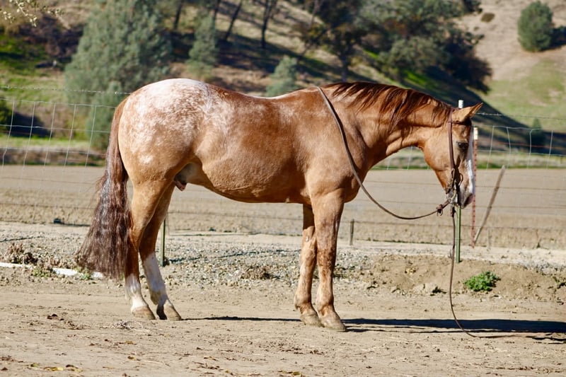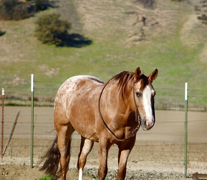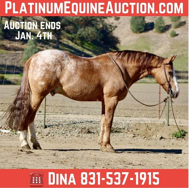 ONLINE AUCTION Place your bids at www.PlatinumEquineAuction.com Starting Bid $3500 Auction ends January 4th, 2025 Need a new saddle? Check out White Rock Saddles on our website or Facebook APPLEWOOD — Don’t scroll past this one. 9 Years Old • 14.3 Hands • Dun Blanket Appaloosa Gelding You could line up a hundred geldings and still spot this one first. Applewood is a standout — a striking dun blanket Appaloosa with tiger stripes on his legs and a look that flat gets attention. What really makes “Woody” special is how he feels under saddle. He’s consistent, pleasant, and makes every ride feel simple. Not hot, not heavy, and never complicated — just a steady, responsive gelding that’s easy to get along with from the first ride, and stays that way. He’s safe, dependable, and well-suited for riders of many levels. And he’s a cool ranch horse to the core. Woody has branded and worked cattle, and he loves it — the kind that stays handy, pays attention, and acts like he’s proud of his job. He’s been started on the heeling and enjoys cow work, with a willing attitude that makes him fun to ride and easy to keep improving. Woody has been hauled and exposed to just about everything: tarps, flags, obstacles, bridges, tires, water, brush, and traffic — and he takes it all in stride with a calm, steady mind. If you love to ride outside, Woody shines. He’s confident and sure-footed on the trail, navigating water crossings, wildlife, tight paths, logs, brush, and rocky ground with focus and care. He pays attention to where he puts his feet and stays composed when the terrain gets real — not just pretty. In the arena, Applewood is smooth and balanced with a comfortable way of going. He picks up both leads, moves out quietly, stays soft in the face and body, has a nice stop, backs willingly, and turns easily without getting stiff or overdone. Honest, uncomplicated, and enjoyable. On the ground, Woody is just as reliable. He hauls well, stands tied, bathes, clips, and is good for the farrier. Stalled or turned out, alone or in a group, he’s the same solid horse every time — no surprises. Applewood is one of a kind — uniquely marked, easy to ride, and the kind of horse you’ll be proud to own. Whether you’re building confidence or you’ve been doing this a long time, he’s the kind of partner you can feel secure on. Come meet him or call to learn more. Located in Paicines, CA (Longhorn Ranch) 📞 Dina: 831-537-1915 Nationwide shipping available.+ ONLINE AUCTION Place your bids at www.PlatinumEquineAuction.com Starting Bid $3500 Auction ends January 4th, 2025 Need a new saddle? Check out White Rock Saddles on our website or Facebook