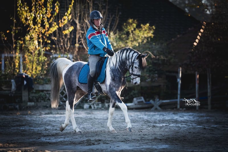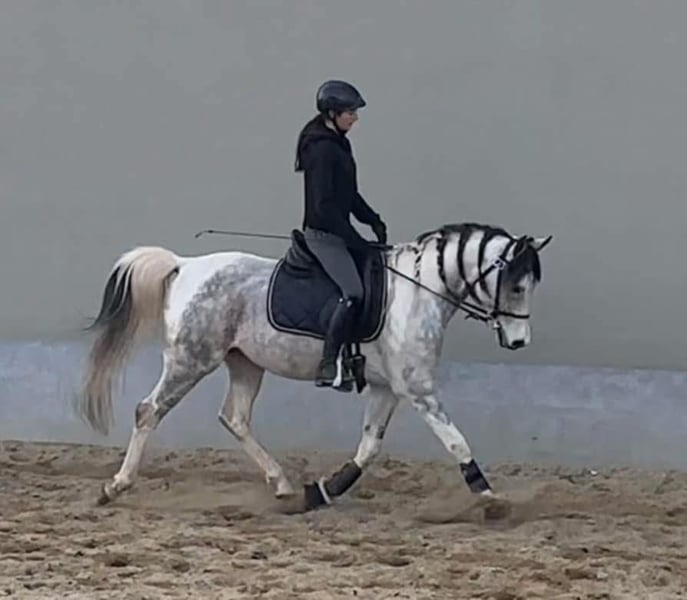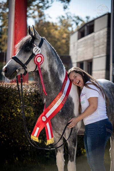 ¡Oportunidad única! 💫 Solo si realmente encaja, mi Caiylani el Zahra podrá mudarse a un nuevo hogar — no se trata de una venta de emergencia. Caiylani el Zahra Pintabian, 99,22% de sangre porcelana Altura: 1.55 m Libre de CA, SCID y LFS Aprobado: ÖAZV, ZFDP, ÖZP y ZSSE Campeón en la HLP 2021 en Stadl-Paura No presenta ninguna enfermedad conocida Examen de compra disponible en cualquier momento Durante muchos años he tratado de encontrarle el jinete adecuado, que pueda potenciarlo en el deporte y que realmente quiera trabajar con él. Lamentablemente, nunca ha sido el momento correcto. Yo misma soy una amazona de ocio y no puedo aprovechar su potencial al máximo. Como solo está en mi propiedad sin uso, deseo encontrarle un hogar adecuado. También podría considerarse ponerlo a disposición, siempre que las condiciones sean las correctas. Caiylani es un caballo increíblemente amable y tranquilo. Solo la atmósfera de competición le estresa mucho y necesita una mano experta que le ayude a acostumbrarse. En los vídeos se le ve montado por dos niños (13 y 18 años) y, como mencioné, es completamente fácil de manejar. Gracias a su enorme libertad de movimiento en la escápula y su talento para la recogida, representa la máxima expresión del caballo árabe de doma. También lo veo muy apto para la Working Equitation. Hemos participado con él en pruebas de concurso completo y también en saltos, donde demuestra ser muy talentoso. Tiene un corazón grande y, con su jinete de confianza, atraviesa cualquier obstáculo con valentía. También podría entregarse como caballo castrado. El futuro propietario debe aceptar que puedo seguir usando su depósito de TGV durante toda su vida. Lo críe yo misma desde potro. En 2021, ganó con nota 8,27 la prueba de selección en Stadl-Paura, y está aprobado por cuatro asociaciones de razas. Reconocido para la cría de Trakehner y ponis deportivos… Estoy muy orgullosa de él. Su calidad excepcional ha sido demostrada en varias ocasiones y ha recibido elogios de quienes evalúan un caballo según sus puntos en doma. Él puede cubrir y criar en libertad en el pasto, y también puede estar con las yeguas durante todo el año. Es muy cariñoso con ellas. Sus potros heredan siempre su carácter árabe, sus movimientos por encima de la media y su conformación correcta. Todos son muy inteligentes y cariñosos. Hasta ahora, todos sus descendientes nos han dado mucha alegría. Actualmente, tengo dos en mi establo. Si quieres ofrecerle a Caiylani el hogar perfecto, no dudes en contactarme. Una reunión sin compromiso es siempre posible. Tomo esta decisión no solo guiada por mi corazón, sino de forma racional en interés del caballo. ¡Esperamos saber de ti!