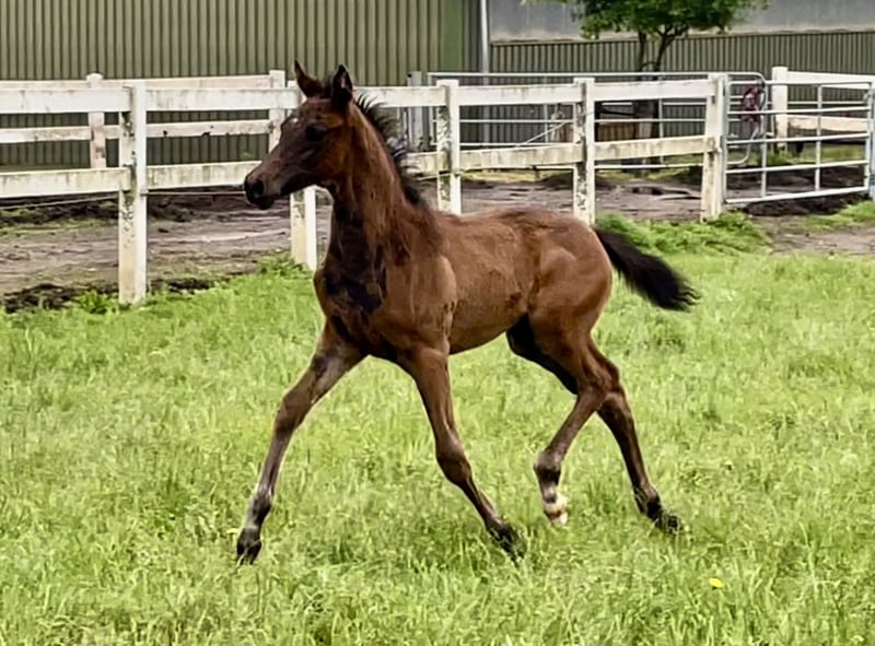 First foal of our HLP winner Camar Varys AA. He is a German noble blood horse in the Arabian Breeding Association VZAP. His grandfather, elite stallion Gabun, is successful in dressage including advanced (S) level, PrSt Camar Vaticana is SLP winner, registration winner, VS placed. Bonaparte certainly needs little description, he competed successfully in advanced level show jumping until the Hamburg Derby. His dam comes from the highly successful VS horse Glücksruf I and a sporty thoroughbred dam line. This little stallion is beautiful, outgoing, cheeky and very cuddly. He would like to leave us in the fall or stay with us for further breeding.