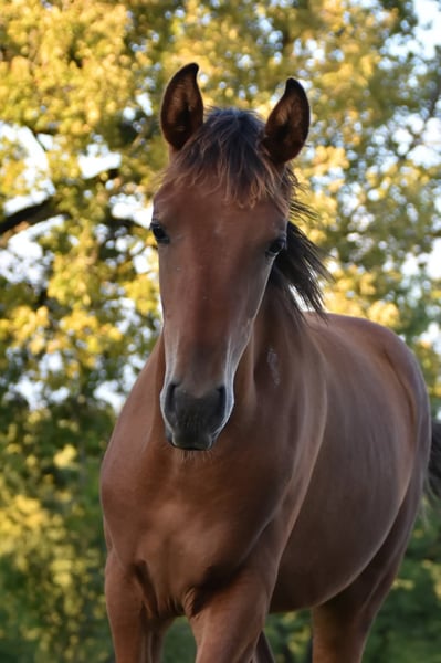 Poulain bai né le 16 mars 2025 Paziel Pepsi N'dya Par Lola (espagnole) et Levannte Al Alsan (pur sang arabe), tous deux visibles sur place Papiers DSA Très bien fait, harmonieux, élégant avec une superbe tête et de bons aplombs. Gentils, curieux et très câlins Croisement polyvalent, choisi avec soin afin de conjuguer rusticité, polyvalence et élégance mais aussi Indemne de maladies génétiques (pssm1, scid, CA, dermite....) Allures souples et aériennes, il sera un parfait compagnon pour toutes disciplines Destiné à une famille en or consciente des besoins fondamentaux d'un cheval Toise adulte estimée : 1m55 -60 Toise 1m30 à 5 mois Vit dans un troupeau de tous âges, bien codé socialement (11 chevaux dans le troupeau) Alimentation spéciale poulain en croissance + CMV Vermifuges et parages réguliers Sevrage tardif envisagé vers ses 9 mois Éducation quotidienne, voyage en van réguliers, pansage ok Élevé avec respect, confiance et éthique, ce poulain est bien plus qu'un cheval, c'est une rencontre mais aussi un accompagnement à la réalisation de votre projet. Photos et vidéos sur les réseaux sociaux Les Plaines de N'dya