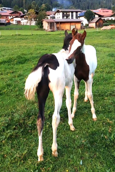 For sale is our beautiful Arabian Partbred chestnut pinto colt, WH. Aayan, born on April 23, 2025. This charming chestnut pinto captivates with his striking appearance and friendly, balanced temperament. Our little man is ideally suited for the discerning leisure rider or endurance rider, as his parents have already been very successful in endurance sports. He will become a reliable and versatile leisure partner. He already shows a pleasant demeanor. WH. Aayan will be ready to leave the Wäldnerhof around November 2025. If the new owner has not yet found a suitable stable, it would also be possible for him to stay with us over the winter of 2025/2026. He has the potential to be a loyal companion for relaxing rides or longer distance rides in nature. If you are looking for a very typy Arabian chestnut pinto foal, then WH Aayan is just right for you! ****WH. Aayan has full papers from the ÖAZV (Austrian Arabian Breeding Association).***** His father "Jameel" is also well-known; he was the champion of his age group at the licensing and reserve champion of the stallion performance test (30-day test). He has also successfully completed endurance rides and driving events up to 80 km. The last pictures are of Jameel and the mother Asaalah. If you are interested or would like more information, we look forward to your message!