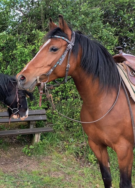 Nele Tanati ist eine nette, unkomplizierte Stute. Sie ist bei mir geboren und kennt nur Offenstallhaltung. In der Herde ist sie im unteren Rangbereich. Ihre Eigenschaften: - Ist lieb und neugierig - Steht brav beim Schmied (zur Zeit barhuf, über Sommer meist vorne beschlagen) - Geht in den Hänger (Wenn sie mal keine Lust hat, dauert es max. 10 Minuten) - Ist im Schritt eher langsam unterwegs - Ist leicht und bequem zu reiten, kennt allerdings (bisher) nur das Gelände - Kann alleine weggehen und auch mal alleine daheim bleiben - Geht nicht so gerne durch Wasser, macht es aber - Mag Hunde nicht besonders gerne, macht ihnen aber auch nichts (wenn sie nicht gerade versuchen, sie in die Fesseln zu knappen…) - Ist eine liebe und fürsorgliche Mutter (Hat bisher 2 prämierte Fohlen, die beim ZFDP eingetragen wurden, 1 x Pinto und 1 x Arab. Partbred Spezial) In 2025 hat sie ersten Tagesritt vorbildlich gemeistert. In der Gruppe von 9 Pferden konnten wir in allen Positionen mitreiten, sie war fleißig und freundlich. Weiteres gerne auf Anfrage.