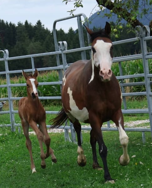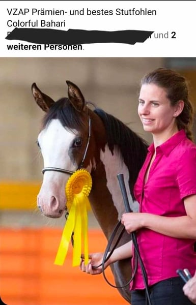 Colorful Bahari – Eine Partbred Araber Stute, die (Zucht)Träume wahr werden lässt Colorful Bahari ist eine Stute, die man nur äußerst selten findet – eine typvolle, ausdrucksstarke und genetisch außergewöhnliche Partbred Araberin, die sowohl optisch als auch züchterisch höchste Ansprüche erfüllt. Hervorragende Abstammung – Elite und Championblut vereint. Mutter: Tochter des außergewöhnlichen Elitehengstes aus Amerika TE Pharenheit, bekannt für Charakter, Präsenz und Leistungsbereitschaft. Vater: Der vielfach ausgezeichnete Multichampion Kunar T, dessen Nachkommen auf Shows und in der Zucht überzeugen. Diese Kombination macht Colorful Bahari zu einer genetischen Schatztruhe für anspruchsvolle Züchter. Ihre Nachzucht zeigt bereits eindrucksvoll, welches Potenzial sie weitergibt. Bewährte Zuchtstute – Mutter außergewöhnlicher Fohlen Colorful Bahari wurde 2015 geboren und hat bislang drei herausragende Fohlen gebracht, die allesamt mit Typ, Farbe und Bewegung sofort beeindrucken. Aktuell steht sie mit Fohlen bei Fuß, was ihre Zuverlässigkeit und gute Fruchtbarkeit nochmals unterstreicht. Exterieur & Auftritt – Schönheit in Bewegung Colorful Bahari vereint Eigenschaften, die in dieser Kombination nur selten anzutreffen sind: eleganter, edler Araber-Typ, korrektes kräftiges Fundament, moderne ansprechende Größe, gangstark mit viel Elastizität und Vorwärtsdrang, starke Präsenz und Ausstrahlung die sofort ins Auge fällt. Sie verfügt über beste Voraussetzungen, um weiterhin hochwertige, typvolle und auffällige Fohlen zu bringen – ideal für ambitionierte Zuchtprogramme. Ein absolutes Highlight ist ihr außergewöhnlich hoher 98,44% Overo-Anteil – eine absolute genetische Rarität im arabischen Partbred-Bereich. Diese Seltenheit macht sie besonders wertvoll für Züchter, die gezielt Farbe mit Qualität und arabischem Typ verbinden möchten. Für Kenner, Liebhaber & Visionäre Colorful Bahari ist die perfekte Wahl für alle, die: eine besonders seltene und genetisch wertvolle Zuchtstute suchen. Typ, Bewegung und Farbe in ihrer Zucht vereinen möchten. Großen Wert auf Elite- und Champion-Abstammung legen. Außergewöhnliche, auffällige Fohlen planen. Eine Stute mit Zukunftspotenzial für anspruchsvolle Zuchtziele möchten Ein Angebot, das man nur einmal findet. Stuten wie Colorful Bahari kommen extrem selten auf den Markt. Ihre Kombination aus Abstammung, Optik, Genetik und verlässlicher Zuchtleistung macht sie zu einer außergewöhnlichen Gelegenheit für Züchter, die ihr Programm auf ein neues Niveau heben möchten. Bahari kann ab mitte/Ende Februar in ihr neues Zuhause umziehen. Bis dahin steht sie natürlich kostenfrei bei mir. Melden, anschauen, sich verlieben...