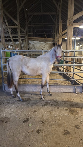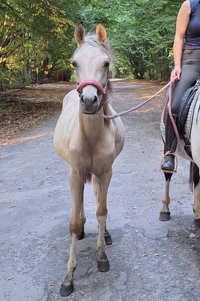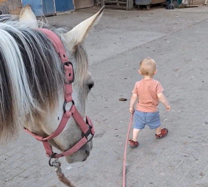 Hola queridos amantes de los caballos, Lamentablemente, las circunstancias personales a menudo cambian de manera inesperada. Compré a Sadie, una yegua increíblemente cariñosa y completamente orientada a las personas, cuando tenía 5 meses, en septiembre de 2024, a la criadora. La única razón por la que tengo que vender a esta yegua de ensueño es que este año me separé de mi esposo y ahora soy madre soltera de un niño pequeño (más detalles a petición). Sobre Sadie: es exactamente lo que uno podría desear; muy afectuosa, pegajosa, súper sociable, muy inteligente, aprende rápidamente y tiene una mente muy clara (ya en edad de caballos mayores, pasó por una pradera con vacas sin problema). Ya conoce el trabajo en el suelo (Join-up) y aprende trucos muy rápido (ya da besos). Desde el principio, ha sido muy fácil de manejar; atarla no supuso ningún problema, aunque no hay que tener caramelos en el bolsillo... ella los encuentra y roba :-D. Sadie también ha participado en un trail con muchas cosas que dan miedo, y disponemos de varios videos (los enviamos por WhatsApp a petición). También hay varios videos de la pradera, donde ella está muy lejos, la llamamos y galopa hacia nosotros relinchando. No nos resulta fácil separarnos de Sadie, pero todos sabemos que la situación económica obliga a tomar decisiones difíciles. Es una decisión racional, pensando siempre en el bienestar del poni (ya que, por mi hijo de 2 años y mi situación de madre soltera, no tengo suficiente tiempo). Si hay interés, no dudes en contactarnos y venir a verla :-) Saludos