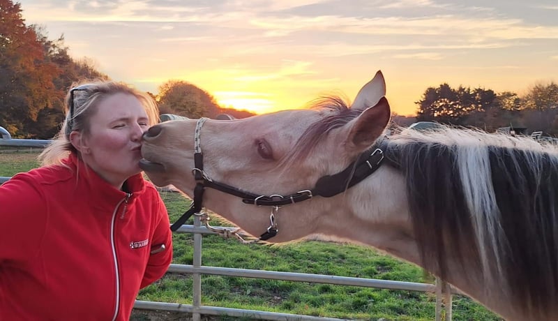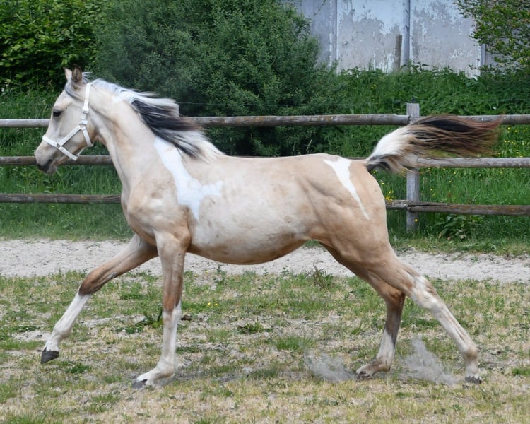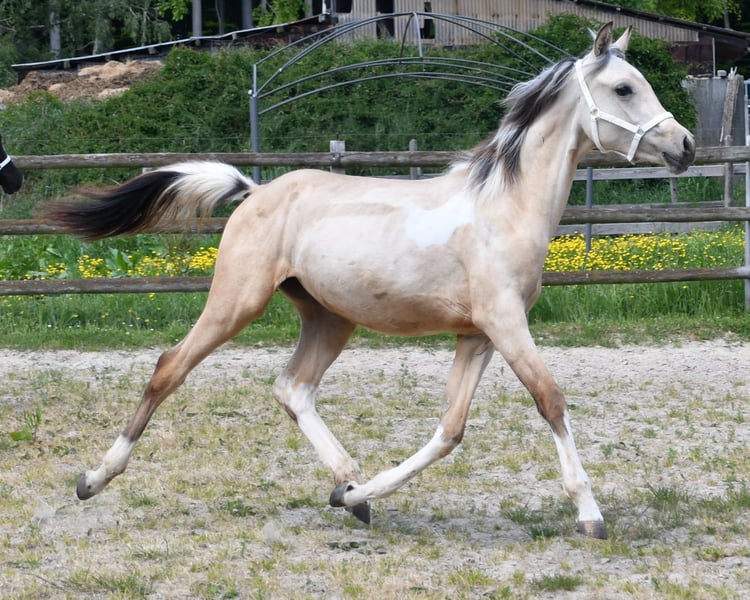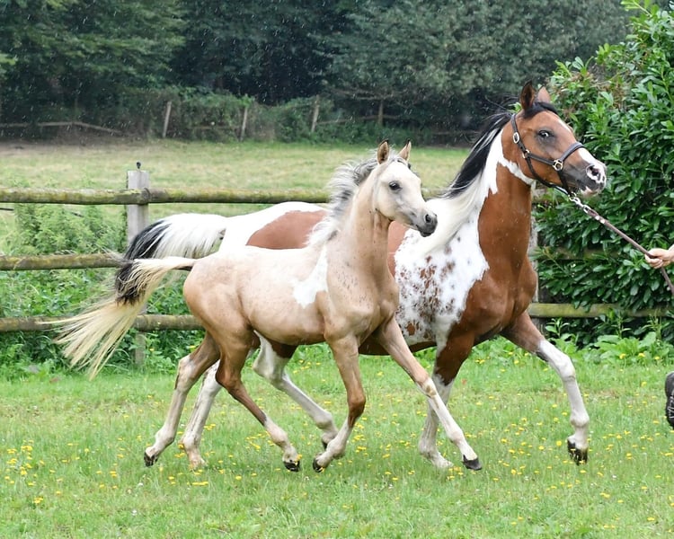 Hallo liebe Pferdefreunde! Leider entwickeln sich die privaten Umstände oft anders als man denkt. Ich habe die megaliebe und absolut 100% menschenbezogene Sadie im Alter von 5 Monaten bei der Züchterin im September 2024 gekauft. Der einzige Grund, warum ich diese Traumstute abgeben muss, ist, dass ich mich in diesem Jahr von meinem Mann getrennt habe und nun alleinerziehend mit kleinem Kind bin (Näheres auf Anfrage). Nun zu Sadie: Sie ist das, was man sich nur wünschen kann; ultralieb, anhänglich, super menschenbezogen, super schlau, schnell lernfähig und absolut klar im Kopf (ging schon bei älteren Pferden voraus an einer Kuhweide vorbei). Sie kennt bereits Bodenarbeit (Join up) und lernt Tricks mega schnell (kann schon Küsschen geben). Sie war von Anfang an immer unkompliziert, Anbinden klappte auf Anhieb - Möhren sollte man allerdings nicht in der Tasche haben ... sie findet sie und klaut :-D Sadie hat auch bereits an einem Trail - mit ganz vielen gruseligen Dingen - mitgemacht. Davon gibt es einige Videos (diese versenden wir auf Anfrage per Whatsapp. Es gibt auch mehrere Vidoes von der Weide, wo sie ganz ganz weit unten steht, wir sie rufen und sie wiehernd zu uns galoppiert). Es fällt uns nicht leicht, uns von Sadie zu trennen, aber wir wissen alle, dass die wirtschaftliche Entwicklung den einen oder anderen in die Knie zwingt. Da muss man dann einfach reell entscheiden, zumal man an das Wohl des Ponies denken muss (da ich wegen meines 2jährigen Sohnes und nun alleinerziehend nicht die nötige Zeit habe). Wenn das Interesse geweckt ist, am besten melden und vorbei kommen :-) lg