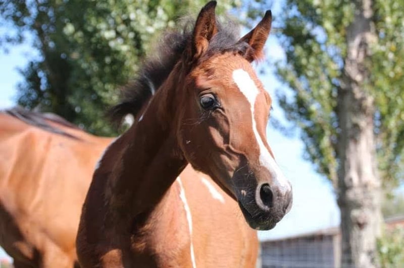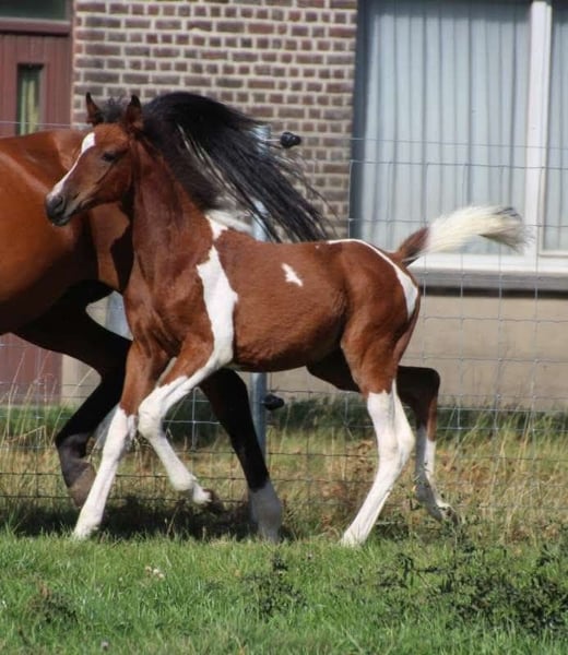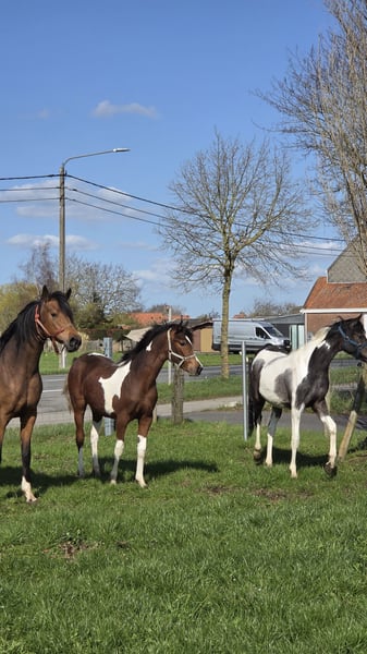 Beautiful mare foal Rose is well-versed in her foal alphabet, moves neatly, allows grooming, easily gives her four legs, and can stand still. Harmoniously built foal, nicely colored We estimate her height at around 1.55 m (16.1 hh). She comes with AES registration papers and is already allowed to leave her dam. About her parents: Her sire is Reddy Wally Ter Linden (son of the CCI4* eventing stallion Eddy Wally by Querlybet Hero), who competed internationally in eventing at 2-star level and in CSI 1.25m show jumping. Her dam is one of the few direct Padrons Psyche offspring in Belgium; her mother is a daughter of QR Marc, with a super gentle and calm temperament, very easy to handle, and with beautiful gaits. Nice lines for an all-round horse with the necessary stamina for recreation, jumping, dressage, eventing, endurance, and ground work. We would love to hear from a home where we can get updates on her 😉 Asking price: €3,500 Who’s ready to start working with her?