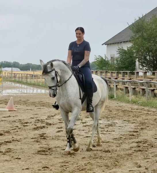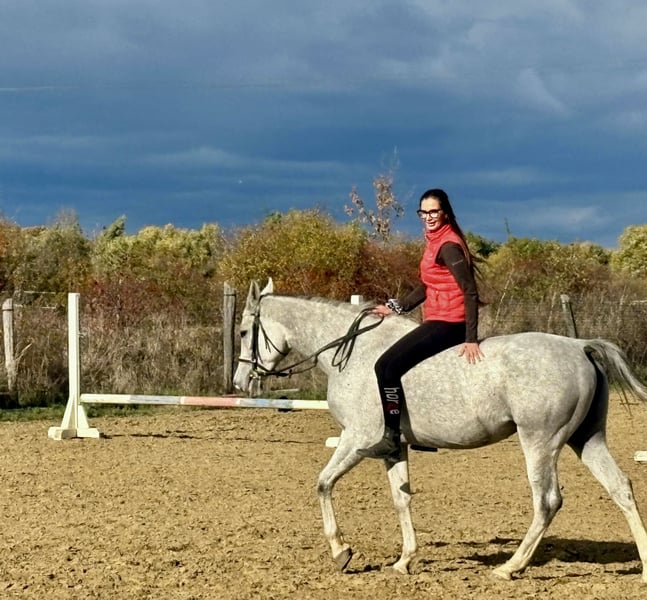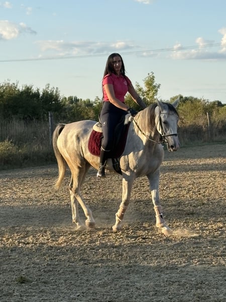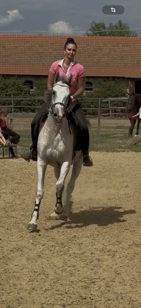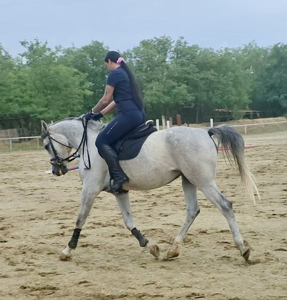 Szofi, Araberstute, 5 Jahre alt, ca. 163 cm Stockmaß. Sie war im Springreiten im Turniersport eingesetzt und springt derzeit sicher bis 115 cm, mit guter Technik und schwungvollen Bewegungen. Aufgrund ihrer Abstammung und ihres Körperbaus ist sie sowohl für Distanzreiten, Springreiten als auch Dressur geeignet und verfügt über ausgezeichnetes sportliches Potenzial. Eine sehr temperamentvolle, arbeitsfreudige Stute mit gutem Nervenkostüm, dabei freundlich und kooperativ im Umgang. Derzeit tragend von Coronell Z, was diese Anpaarung auch aus züchterischer Sicht besonders wertvoll macht. Geeignet sowohl für Sport- als auch Zuchtzwecke, besonders empfohlen für Distanzreiten und den langfristigen sportlichen Einsatz. Standort: Ungarn, Debrecen WhatsApp: +36 30 368 1990