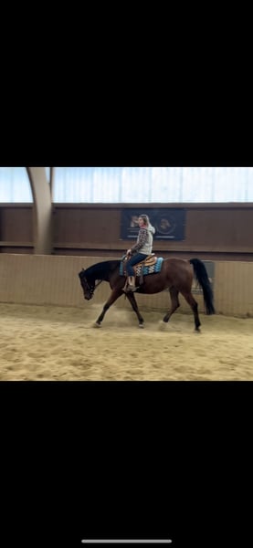 ⚜️ Heartfelt Favorite ⚜️ "Theo" - Pinto-Arabian / Reitpony cross - Born: July 3, 2020 - Height: 15.3 hh - Mother: Louise – Reitpony - Father: Taza Bajan (performance stallion) – Pinto-Arabian - Three-month foundational Western riding training with a professional, MJ Performance Horses / Michael Jahnke (January 2024 to early April 2024) - Since June 2025, back in professional training with Belle Air Quarter Horses Theo grew up with his breeder until he was 2.5 years old, in a very family-like environment and under excellent conditions. He then came to his current owner, who had fallen in love with him as a foal. In December 2022, he was gelded. Before starting his riding training, his owner often took him on solo rides in the countryside. From the beginning, both his breeder and owner have always cared for and nurtured him carefully. Theo is a handsome, sturdy cuddle-bear (but not a weight carrier!). He is very easy to handle overall, including farrier (four-time shod), veterinarian, and loading. He is very social with other horses, always friendly and open. Theo came to us for further training because, due to lack of time, he enjoyed about five months of pasture life (but was still handled and fed daily). He is very eager to learn and enjoys work and variety. However, during training, we noticed that his progress was slow, and he occasionally showed "problems" with carrying himself and working over his back. Therefore, we had X-rays taken, which unfortunately revealed that his dorsal spinous processes are closely aligned. To rule out any other issues, we also have X-ray images of his hocks. Since then, we have been training Theo more specifically, focusing on strengthening his back from the ground as well as from above. He is well-behaved under saddle and shows no bad habits. After his basic training, he mainly went on solo rides with his owner in the countryside. Due to his condition, it is very important for us to find someone who is experienced, committed, and willing to continue his development. Only then can long-term joy with him be guaranteed. We are looking for someone with experience and enthusiasm for groundwork, who is also interested in further education or attending clinics. Once Theo has built trust and confidence, he is an absolute buddy and heart horse, always greeting you happily when you enter the stable or pasture. So far, he has only known 24/7 hay, kept in a box at night and on pasture during the day, and only with geldings (not tested with mares). We could also imagine him thriving in a small, well-managed open stall with a consistent herd. His owner is only offering him for sale because she cannot provide the training he needs and cannot support him as much as he requires. It is very difficult for her, which is why we are searching for the absolute 5-star home for him—one with a family environment where he will be loved, cared for, and nurtured just as he has been so far. Video: https://youtube.com/shorts/I7FU4-czJ4w?si=eZ1-XxykAwGo99B_ We are happy to arrange a trial ride and charge €40 for it.