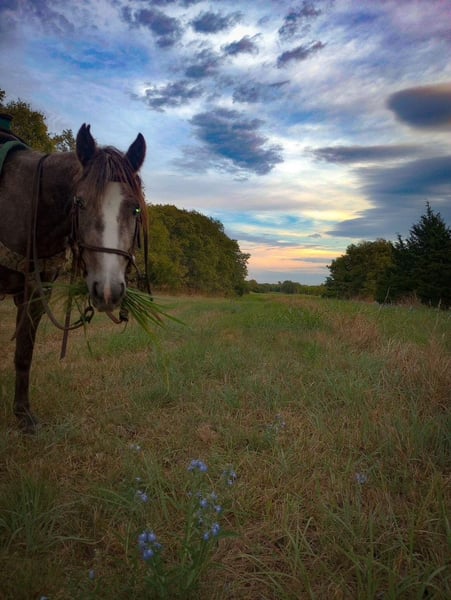 "AVAILABLE ON ONLINE HORSE AUCTION AT www.MagicHorseAuction.com BIDDING OPEN NOW thru TUESDAY | December 23RD! BUY IT NOW AVAILABLE! *Final price will be determined on auction site* CONSIGNOR CONTACT INFO: JUSTINE JACKSON #580-615-1124 LOCATION: Caddo, OK" """Faith Walker is a stunning young Draft Cross mare with a rock-solid foundation and an unbeatable temperament. She is barefoot, sound on all four hooves, with clean legs, bright clear eyes, and overall excellent health. She has passed a Pre-Purchase Exam (PPE) and has current Coggins papers Faith is truly exceptional—extremely gentle, highly desensitized, and impressively intelligent. She’s eager to please, incredibly willing, and has that endearing """"in-your-pocket"""" personality. Her ground manners are impeccable, and she is soft in the mouth, handy with a neck rein, and responsive to cues. She stops on a dime and backs up with ease. This mare is fearless—she goes the pace you ask for, is gun-safe, and is a dream on the trails. She confidently crosses rocks, creeks, steep hills, water, and logs with sure-footed precision. She has seen wildlife and remains calm and composed. Faith can be ridden bareback or with a saddle and is unfazed by dogs, cats, other horses, cattle, traffic, trains, ATVs, lawnmowers, and four-wheelers. She loads and unloads from a trailer with ease, and she’s a breeze to brush, bathe, saddle, unsaddle, and catch—she’ll even meet you at the gate. She stands quietly for the farrier and has no vices or bad habits. With her fearless disposition and strong foundation, Faith is ready for any direction—be it trail riding, mounted shooting, or any discipline her new rider chooses. You simply won’t find another draft cross mare this young, this smart, and this experienced. It has been an absolute privilege to train her, and whoever takes her home is truly getting a gem. Come meet Faith in person or arrange for shipping if you're unable to make the trip.