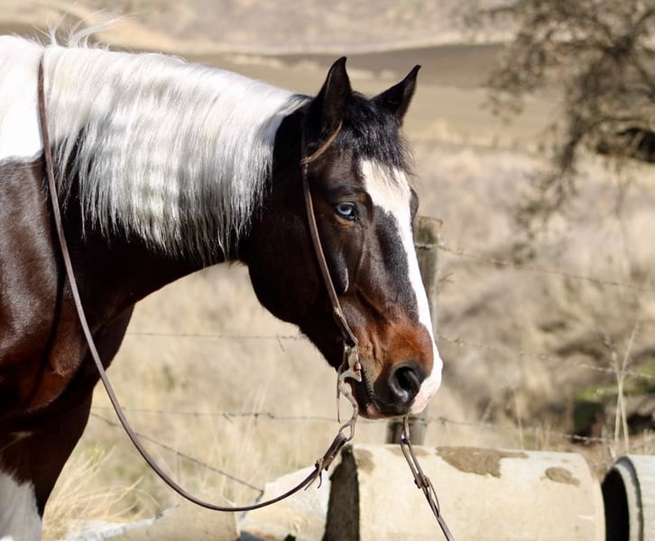 ONLINE AUCTION Place your bids at www.PlatinumEquineAuction.com Starting Bid $3500 Auction ends December 29th, 2024 Need a new saddle? Check out White Rock Saddles on our website or Facebook! Meet Bison… The gentle giant who will make your New Year unforgettable! This stunning 8-year-old tri color paint draft cross gelding is stunning with one blue eye standing at 16 hands, embodying strength and grace all wrapped up in one big puppy dog of a horse. Bison will greet you at the gate and put his nose in the halter he loves attention. Whether you’re gathering cattle or dragging calves to the fire or just enjoying a leisurely ride through picturesque state parks, he will calmly go out alone or with a groups of friends. He is great in the pasture with mares and geldings and is just as content in a stall setting. Bison is your go-to partner for any adventure. He calmly crosses flowing rivers and gracefully walks over downed trees while taking in the sights of wildlife with an air of confidence. With his impressive neck rein and sliding stop, this boy knows how to pick up leads like a pro in the arena making him perfect for riders from beginners to advanced he is a confidence builder. He’s also quite the star when it comes to parades, strutting his stuff like he owns the spotlight! But don’t let his good looks fool you; Bison has mastered obstacles too navigating bridges, car washes, and even tires with ease while looking effortlessly stylish whether dressed in English or Western tack. He has carried flags and is not bothered by tarps or balls he is just and easy going boy. He rides bareback in just a halter. You can stand on him slide off his butt and crawl all over him! Riding him feels like sinking into a plush couch; he’s as comfortable as they come! Plus, he’s easy to clip, show off at events or haul around town. He is not concerned about cars, semis or pedestrians. Bison tacks up easy stands for mounting and enjoys grooming sessions he is shod all the way around and good for the farrier. If you’ve been searching for that special equine companion who embodies both heart and versatility. Bison is waiting to meet you at Longhorn Ranch! Located in Paicines, CA contact Dina 831-537-1915. ONLINE AUCTION Place your bids at www.PlatinumEquineAuction.com Starting Bid $3500 Auction ends December 29th, 2024 Need a new saddle? Check out White Rock Saddles on our website or Facebook!