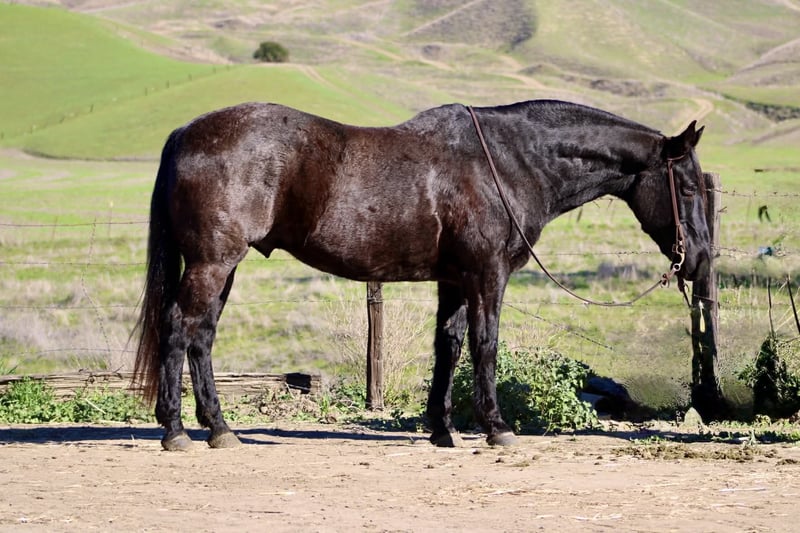 ONLINE AUCTION Place your bids at www.PlatinumEquineAuction.com Starting Bid $3500 Auction ends December 28th, 2025 Need a new saddle? Check out White Rock Saddles on our website or Facebook Bruce — The Blue Roan Draft Cross that will take you anywhere 13 years old • 15.1 hands • Blue Roan • Draft Cross • Built stout Some horses just make life easier, and Bruce is one of them. He’s a blue roan draft cross with a calm, steady presence that makes riding enjoyable, whether you’re out working or taking a quiet trail ride. If you’ve been looking for a horse that is broke, safe, gentle, and confidence-building, Bruce checks every box. He has been the go-to mount here for company riders, beginners, and anyone who wants a smooth, reliable partner—and he always takes care of his person. He’s seen real ranch obstacles and plenty of unusual things that make most horses hesitate: tarps blowing in the wind, flags, tires, bridges, pool noodles, bouncy balls, dogs underfoot, cattle moving around him, and town traffic. Bruce stays relaxed, keeps his head, and simply walks right on through. He also has true ranch experience — he’s been used to gather cattle and has stood quiet at brandings. He understands a job, stays out of your way, and remains dependable when things get busy. On the trail he’s confident and sure-footed, and he rides in the arena correct and easy, just like a good lesson horse. He neck reins, stops soft, moves off your leg, and lopes smooth, balanced circles that are comfortable for any rider. Just swing a leg over and go — he keeps things simple. He’ll cross water, step over logs, push through brush, and handle rocky or uneven ground without thinking twice. Whether he’s riding out alone or with other horses, Bruce stays consistent from the first step to the last. He ties, trailers, shoes, bathes, stands to mount, and meets you at the gate. He’s an easy keeper, good in a stall or turned out, and gets along well with other horses. Bruce is the kind of gelding riders feel confident on — safe, broke, kind, and genuinely enjoyable every time you saddle him. Longhorn Ranch — Paicines, California Call or text Dina at 831-537-1915 to come ride Bruce or ask any questions. Nationwide shipping available. ONLINE AUCTION Place your bids at www.PlatinumEquineAuction.com Starting Bid $3500 Auction ends December 28th, 2025 Need a new saddle? Check out White Rock Saddles on our website or Facebook