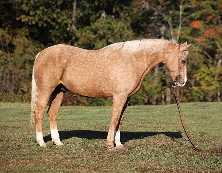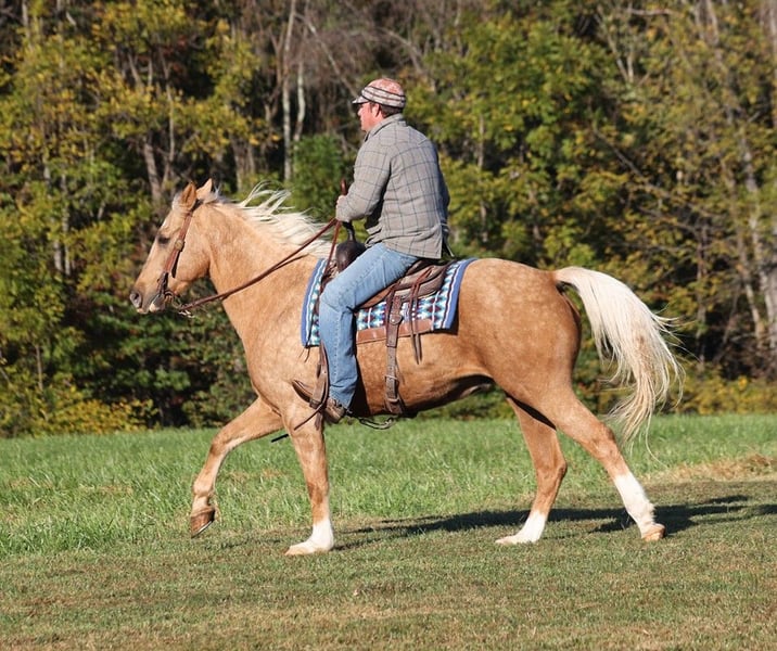 ONLINE AUCTION Place your bids at www.PlatinumEquineAuction.com Starting Bid $3500 Auction ends November 3rd, 2024 Need a new saddle? Check out White Rock Saddles on our website or Facebook! If Barbie has a dream horse this would be him! Able is a well built gelding standing around 15.3hh, he is an 11 year old, dark dappled palomino with white socks. We got Able from the family who raised him. He has been trail ridden in multiple states. He will cross creeks, ditches, logs and navigate rough rocky areas. He is safe riding in traffic. Able has been ridden by older folks and kids as well, just cruising along slow and easy down the trails is his prefered speed. We have used him around the ranch to check cows and sort some on him as well. He is a confident horse on the trails and will lead the crew, head out alone with no issues! He has been exposed to all kinds of wildlife such as deer or turkey or other animals like cows or dogs and will go anywhere that he is asked too. He has been rode many miles in the mountains of Eastern Kentucky and encountered every obstacle possible on the trail. He will go up or down even the steepest slopes, across deep creeks, over downed trees, and over all types of rough terrain while still being sure footed. Able is not cinchy, cold backed, does not crib or weave. Here is one horse that will get you noticed anywhere that you go!!! Feel free to call Lucky 13 Equine Lysandra 765-717-2041 with any questions or to make a buy it now offer. Located in Brodhead, KY. ONLINE AUCTION Place your bids at www.PlatinumEquineAuction.com Starting Bid $3500 Auction ends November 3rd, 2024 Need a new saddle? Check out White Rock Saddles on our website or Facebook!