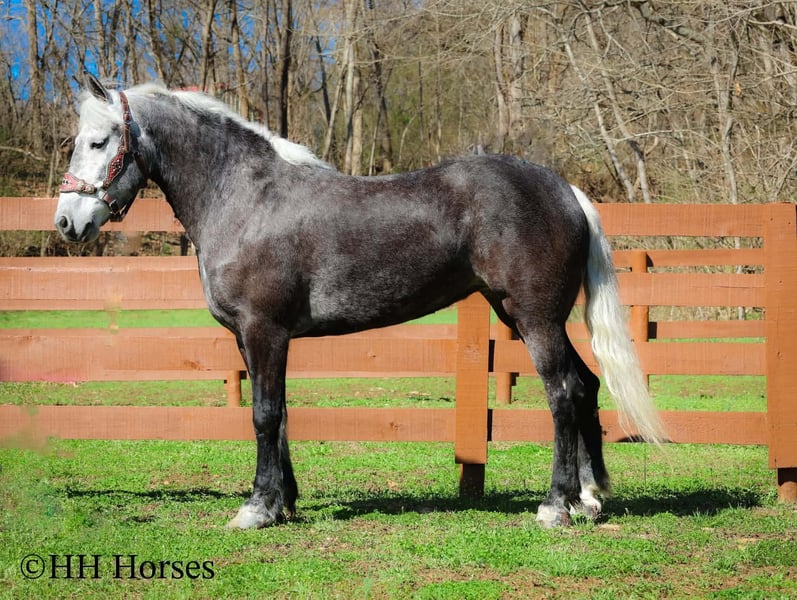 ⚜️𝓽𝓱𝓮 𝐆𝐎𝐋𝐃 𝓢𝓮𝓵𝓮𝓬𝓽⚜️ Happening now thru MONDAY | MARCH 23rd - Available EXCLUSIVELY on HorseBid's website! For more details and to register visit: www.Horsebid.com CONSIGNOR CONTACT: HH Horses 304-238-4155 LOCATION: Flemmingsburg, KY BREED: Draft Cross REGISTERED: No COLOR: Grey Dapple HEIGHT: 15.2 AGE: 5 GENDER: Mare This is "SILVER FOXY", a real attractive, gentle, well broke PERCHERON MORGAN CROSSBRED MARE that is broke to ride and drive. This mare oozes eye appeal. This mare has been trail ridden extensively, she has been through the cross country driving courses, and she aims to please. She stands a stocky 15.2 hands tall, she is 5 year old, and is a gorgeous dark silver dapple with a white mane, foretop, and tail. She has excellent ground manners, she stands to tack, harness, hitch, mount, and groom. She rides and drives out alone with no fuss, she goes anywhere you point her, and is extremely brave and confident. She is not marish, she gets along well with other horses, and she does whatever is asked of her with a can do attitude. She has pulled carts, wagons, and been hooked to farm machinery. She can carry a heavy rider and haul a heavy load under harness. She is sturdy and strong, yet gentle and easy to manage. She is user friendly, traffic safe, and not spooky. She lopes off with no hump and no buck. This mare is extra special with her coloring, her ride, her drive, and her personality. Don't miss out on a real unique and versatile horse.