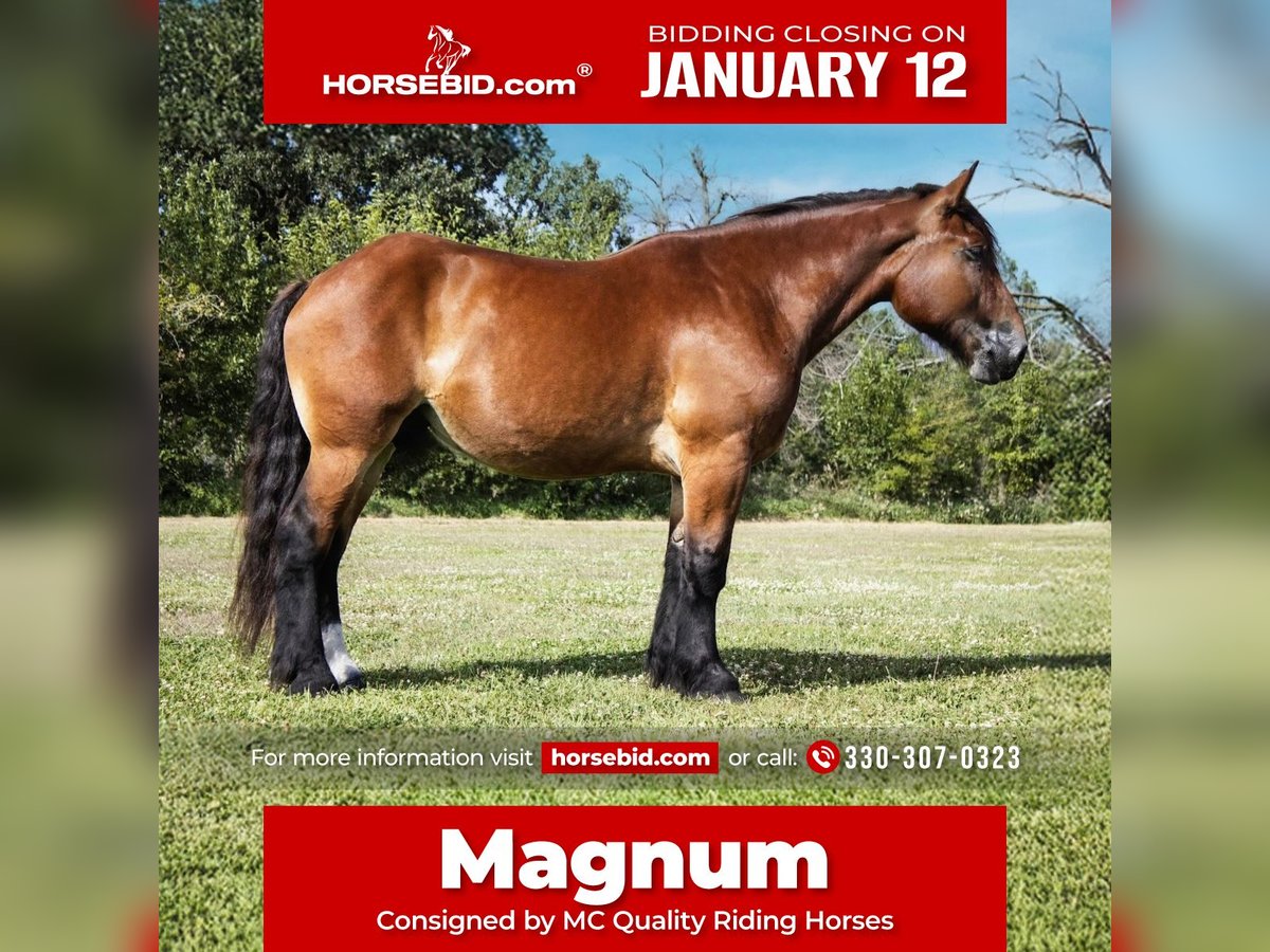 ♦️𝐍𝐄𝐖 𝐘𝐄𝐀𝐑'𝐒 𝑬𝒙𝒕𝒓𝒂𝒗𝒂𝒈𝒂𝒏𝒛𝒂♦️ Happening now thru MONDAY | JANUARY 12th - Available EXCLUSIVELY on HorseBid's website! For more details and to register visit: www.Horsebid.com CONSIGNOR CONTACT: MC Quality Riding Horses 330-307-0323 LOCATION: Battle Creek, IA BREED: Brabant REGISTERED: No REGISTERED NAME: Magnum COLOR: Bay HEIGHT: 16.2 AGE: 5 GENDER: Gelding ✨ Magnum — Stunning 16.2 5 yr old Brabant Bay Gelding ✨ If you’re looking for a big, beautiful, and kind-souled gelding, Magnum stands out in every way. Standing 16.2 hands, he is quiet, gentle, and exceptionally smooth to ride, making him a pleasure for riders of various experience levels. Magnum rides and drives and has extensive trail experience. He is traffic safe, sensible, and steady-minded whether you’re out on the trails, around the farm, or in new environments. He takes everything in stride with an easygoing attitude. ✅ Quiet, gentle, and soft-minded ✅ Very smooth to ride ✅ Rides & drives ✅ Lots of trail miles ✅ Traffic safe ✅ Total love bug personality He is the type that enjoys attention, loves people, and wants to be your partner in whatever you choose to do. Magnum is a true gentle giant with looks, brains, and heart.