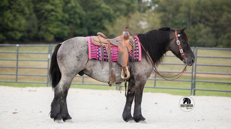 🍁𝒕𝒉𝒆 𝐅𝐀𝐋𝐋 𝑺𝒑𝒆𝒄𝒕𝒂𝒄𝒖𝒍𝒂𝒓🍁 Happening now thru MONDAY | SEPTEMBER 22nd - Available EXCLUSIVELY on HorseBid's website! For more details and to register visit: www.Horsebid.com CONSIGNOR CONTACT: North Wind Farm 330-473-3521 LOCATION: Fredericksburg, OH BREED: Crossbred REGISTERED: No REGISTERED NAME: Mr Charles COLOR: Blue roan HEIGHT: 14.1 AGE: 5 GENDER: Gelding Mr Charles, he is a 5 yr old blue roan crossbred gelding standingn at 14.1hh! Charles is well broke to ride! He has good ground manners, and is easy to get along with! Heh stands good for baths, grooming and tacking up. He will load into the trailer and travel well! Charles loves being turned out in the pasture, and is easy to catch with a treat! He has been to the state parks and he has been on a local trail ride with 500 other horses! He is used to commotion and handles new places well! He is a great trail horse, trust worthy, safe, and has a ground covering walk. Charles will cross all theth obstacles, he doesn’t mind the tarp, and he carries the flag! He will walk over the bridge and stand on the block! He walks through the tarp and the noodles! He is used to being around dogs! He will cross the creeks, he steps over logs, and handles the hills with ease! Charles rides great in the arena, he will pick up both leads, he has a nice stop and back up! He will neck rein and move off of leg pressure! He will ride western, bareback, and bridles! He has the most flowly canter and easy transitions! He will do a 360 in the box and and back up through the poles! He has a nice side pass and pivot! He is so fun to ride, and he laydown as well as sitting down! Charles is willing, he learns fast and is a lot of fun to be around! He is 100% sound and healthy! Contact us for more info or too make an appointment to meet him! ⭐️North Wind Farm is renowned for its quality trail and all-around horses. Our horses are versatile and can excel in any discipline, making them perfect for riders of all levels. Whether you're looking for a reliable trail companion or a horse that can perform in various disciplines, North Wind Farm has the perfect match for you. Our commitment to excellence and passion for equine care ensures that each horse is well-trained, healthy, and ready to meet your needs. Contact us @ Tim (330)600-8840 Lisa (330)473-3521