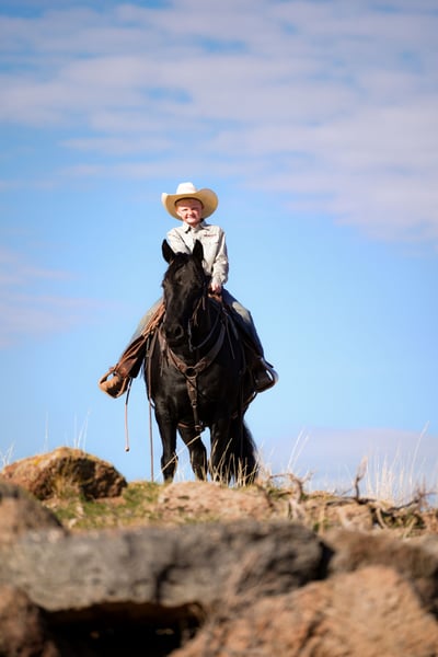 ⚜️ 𝓽𝓱𝓮 𝐇𝐨𝐫𝐬𝐞𝐦𝐚𝐧'𝐬 𝓢𝓱𝓸𝔀𝓬𝓪𝓼𝓮⚜️ Happening now thru MONDAY | DECEMBER 1st - Available EXCLUSIVELY on HorseBid's website! For more details and to register visit: www.Horsebid.com CONSIGNOR CONTACT: Sand Creek Ranch 208-821-2351 or 208-351-2863 LOCATION: Saint Anthony, ID BREED: Draft Cross REGISTERED: No COLOR: Black HEIGHT: 14.3 AGE: 6 GENDER: Gelding Maverick is a pretty Solid black 14.3 hh 6 year old draft cross gelding. He is the perfect size with a solid build and good bone that he can carry anyone who can ride. Maverick is a gem on the trail! He has a nice walk on him and not one you have to peddle. Maverick has gone through rivers, muddy trails, up mountains and even swam in lakes. He has a nice stocky build that’s built to last. Maverick can handle technical trails without missing a beat, carefully picking his foot placement to ensure he and his rider are safe. Maverick handles what the mountain trails have surprised him with ease and confidence taking care of his rider. Maverick is also trained to come to a mounting block for easy mounting and dismounting. He has a smooth rocking-chair lope, nice neck reign, stop and backup. Maverick has been exposed to different obstacles and approaches them with confidence and curiosity. He is sacked out and will go through our obstacle course which includes a teddee todder bridge, pool noodles, tarps, and logs. He has been used to check cattle, get bulls in, been around dogs and loves to be groomed by the kids. Maverick has been rode by lots of different riders from kid, mom, dad, friends and more. He is the same horse after time off whether it’s a couple days weeks or months. Maverick is an easy keeper, comes to grain to be caught, a good for the farrier, hobble trained, and good to load. Maverick sells with a clean PPE. If you’re looking for a solid trail mount, a horse for the family, one to enjoy the trails and have fun on in the arena maverick is your guy.