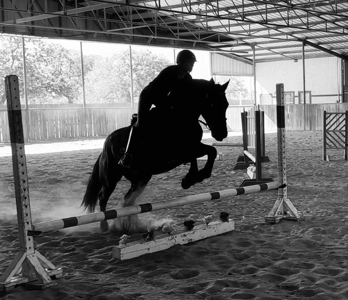 ONLINE-AUKTION Bieten Sie jetzt unter www.PlatinumEquineAuction.com Startgebot: 3.500 USD Auktionsende: 12. Januar 2024 Brauchen Sie ein neues Sattel? Schauen Sie bei White Rock Saddles auf unserer Website oder Facebook vorbei! Phantom ist ein 2020 geborener Draft Cross Wallach mit einer Stockmaß von 15 Händen. Er ist tiefschwarz und so schön wie kaum ein anderes Pferd. Er gehört zu den elegantesten, gut ausgebildeten Draft Crosses, die wir je hatten. Phantom lässt sich einhändig im Gebiss reiten oder beidhändig mit einem einfachen Trensengebiss. Er ist stets äußerst weich im Maul und trägt sich auf natürliche Weise versammelt. Phantom besitzt einen sehr angenehmen Stop und kann mit einem einfachen Kuss angetrieben werden. Er bleibt stets gelassen und freundlich. Wir haben Phantom durch Städte, Wasser, Hindernisse sowie auf Trails außerhalb des Ranches geritten. Er ist gutmütig und geht überall hin, wo man ihn hinführt. Wir haben ihn auch über Sprünge ausgebildet, und er zeigt großes Potenzial! Seine Gänge sind so geschmeidig wie kaum ein anderes Pferd. Phantom hat vorbildliche Bodenmanieren und kommt gut mit anderen Pferden aus. Er ist aktuell tierärztlich untersucht und gesund. Für weitere Informationen rufen Sie bitte Chanel bei Holland Horse Company unter 559-978-6320 an oder schreiben Sie eine Nachricht. Wir beantworten gerne Fragen und helfen beim Versand im ganzen Land!