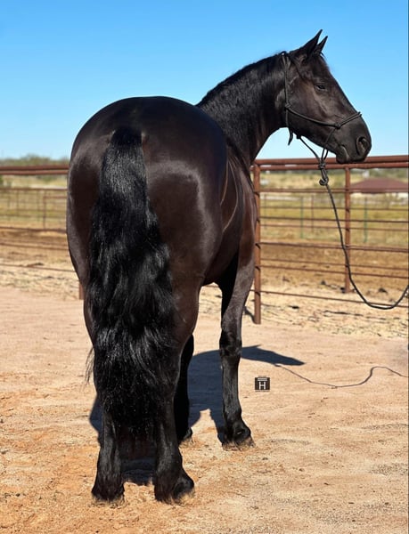 ONLINE AUCTION Place your bids at www.PlatinumEquineAuction.com Starting Bid $3500 Auction ends January 12th, 2024 Need a new saddle? Check out White Rock Saddles on our website or Facebook! Phantom is a 2020 Draft Cross Gelding standing 15 hands tall. Phantom is jet black and as pretty as they come. He is one of the fanciest broke draft crosses we have had the pleasure of owning. He will ride one handed in a bridle or two handed in a simple snaffle bit. He is always extremely soft and naturally carries himself collected. Phantom has a very nice stop to him and will lope off with a simple kiss. He stays broke and gentle always. We have ridden Phantom through the towns, water, obstacles, and outside on the trails as well as out at the ranch. He is good minded and will go anywhere you ask him to. We have started him over jumps and he shows a lot of potential! His gates are as smooth as they come. Phantom has good ground manners and gets along with others well. He is UTD and Sound. FMI call/text Chanel at Holland Horse Company 559-978-6320. We are happy to answer questions and help arrange shipping nationwide! ONLINE AUCTION Place your bids at www.PlatinumEquineAuction.com Starting Bid $3500 Auction ends January 12th, 2024 Need a new saddle? Check out White Rock Saddles on our website or Facebook!