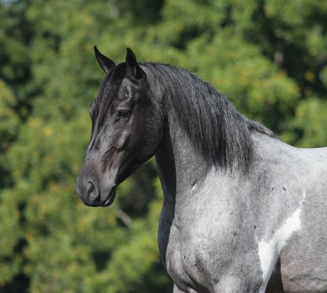 Poncho est aussi cool que différent ! Ce hongre de croisement trait mesure environ 1,55 m (15,3 mains) et pèse environ 635 kg (1400 livres). Il a 5 ans. Poncho est un rare roan bleu tobiano ! Il est le meilleur ami de tous, car il adore l’attention et a une nature très calme. Il provient du même programme d’élevage que plusieurs autres hongres de croisement trait de premier ordre que nous avons eus au cours des cinq dernières années, et chacun d’eux possède l’esprit juste et la nature calme qui en font d’excellents chevaux de famille. Poncho a été monté par tous les membres de notre famille, y compris notre fille de 7 ans. Il a été conduit sur la route et est également sécurisé en trafic. Il est parfait pour la randonnée : il traverse ruisseaux, fossés, troncs d’arbres et navigue sur des terrains rocheux accidentés. Il a un trot fluide, un galop très doux et facile à régler, ainsi qu’un bon arrêt ! Il se guide au licol et recule aisément. Il a été exposé à toutes sortes de faune, comme des cerfs, des dindes, ainsi que d’autres animaux comme des vaches ou des chiens, et il ira partout où on lui demande. Il a parcouru de nombreux kilomètres dans les montagnes de l’est du Kentucky, rencontrant tous les obstacles possibles sur le sentier. Il monte ou descend même les pentes les plus raides, traverse des ruisseaux profonds, franchit des arbres tombés et traverse tous types de terrains accidentés tout en restant sûr de lui. Poncho n’est pas cinchy, ni froid au dos, ni enclin à cribber ou tisser. En plus de la randonnée, il a aussi travaillé avec des machines agricoles. C’est le cheval d’une vie, ne le manquez pas ! N’hésitez pas à me contacter au +1 303 990 8552.